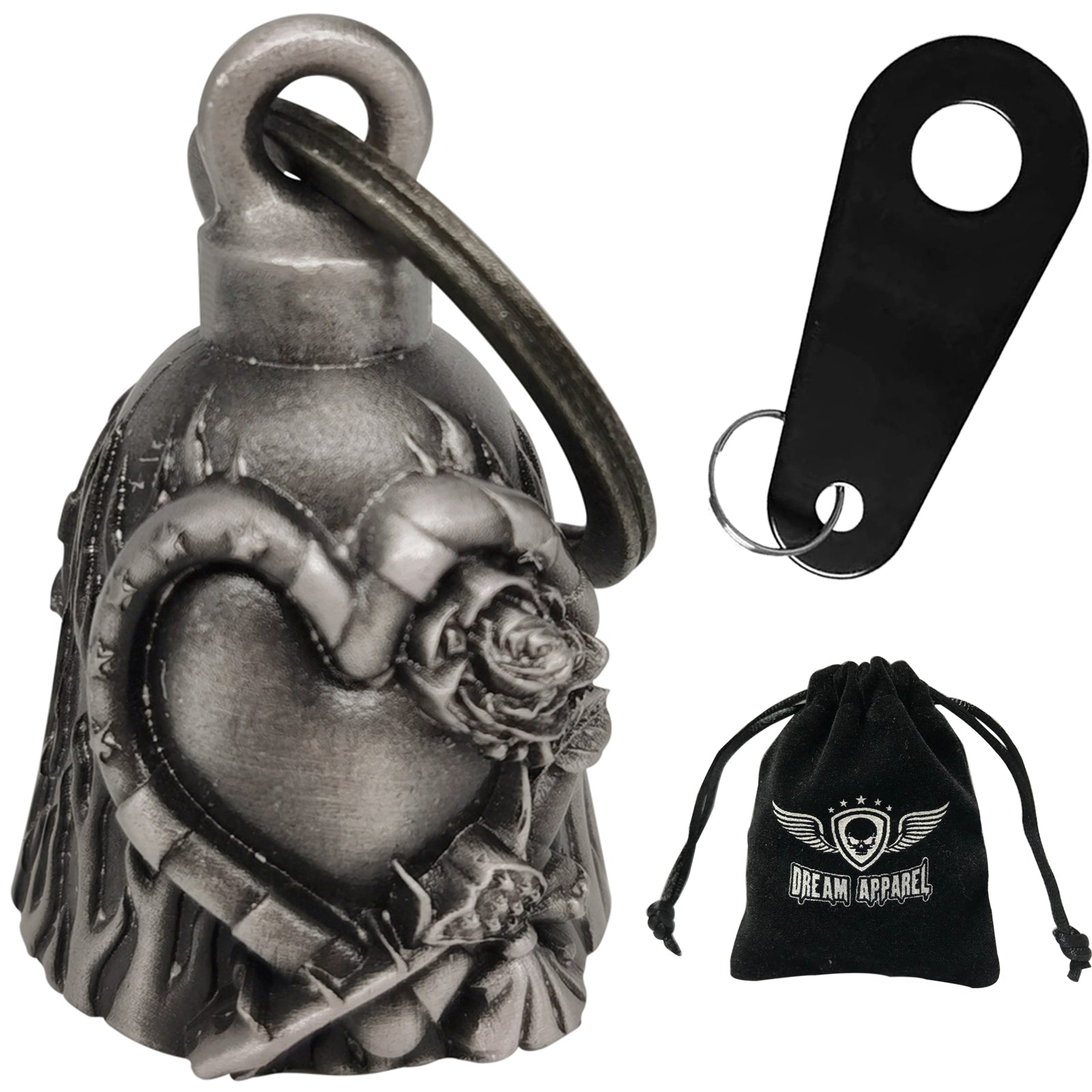 Dream Apparel Heart with Rose Motorcycle Bell, for Good Luck and in 3-D