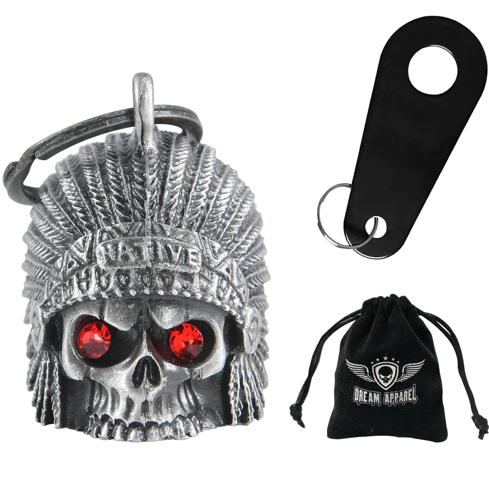 Dream Apparel Indian Skull Head Red Eyes Motorcycle Bell, for Good Luck and in 3-D, Light Weight