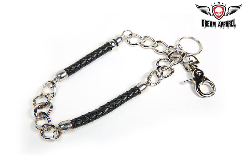 20" Biker Wallet Chain With Two Braided Leather Sections