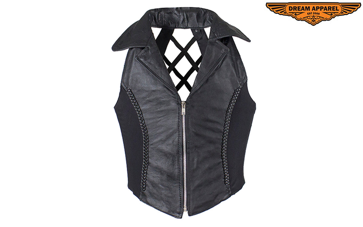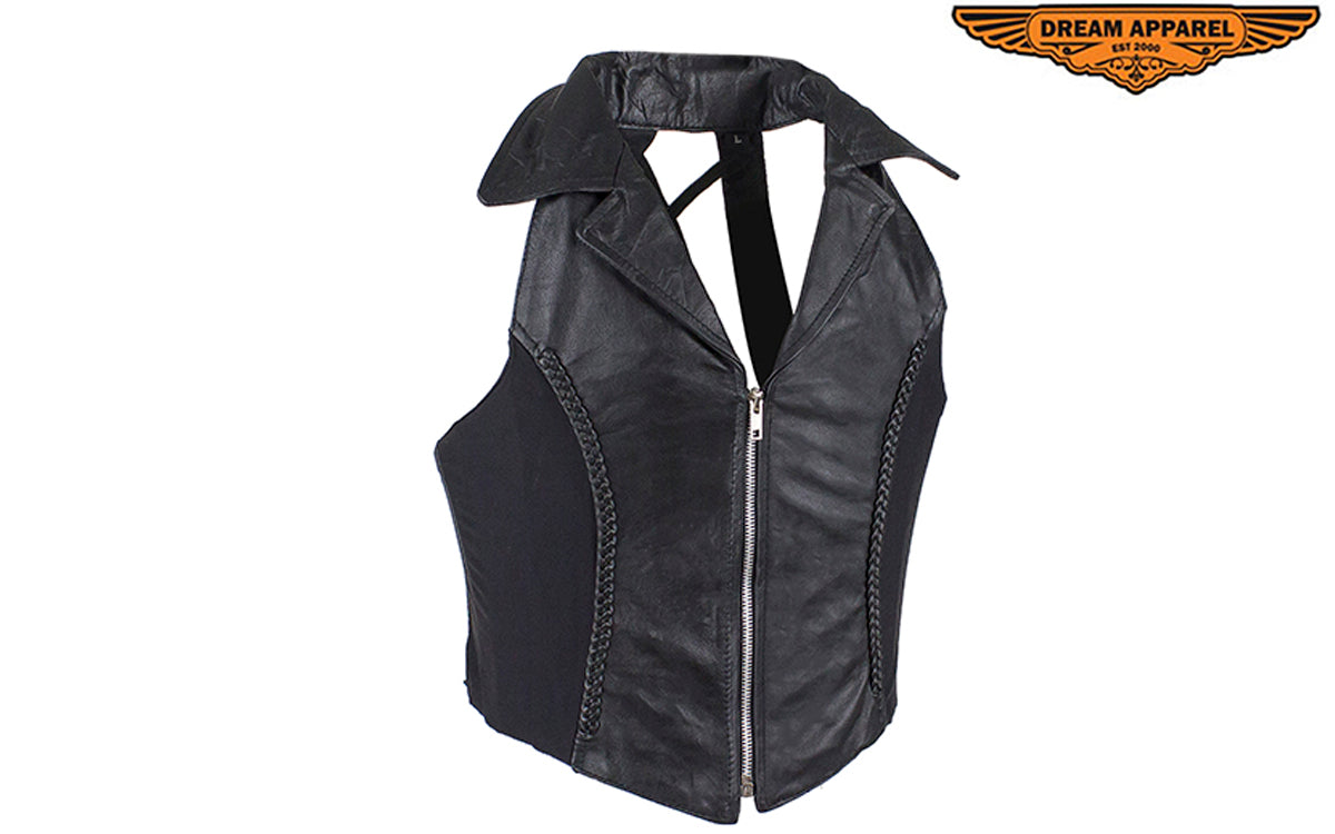 Womens Halter Top With Collar & Braid