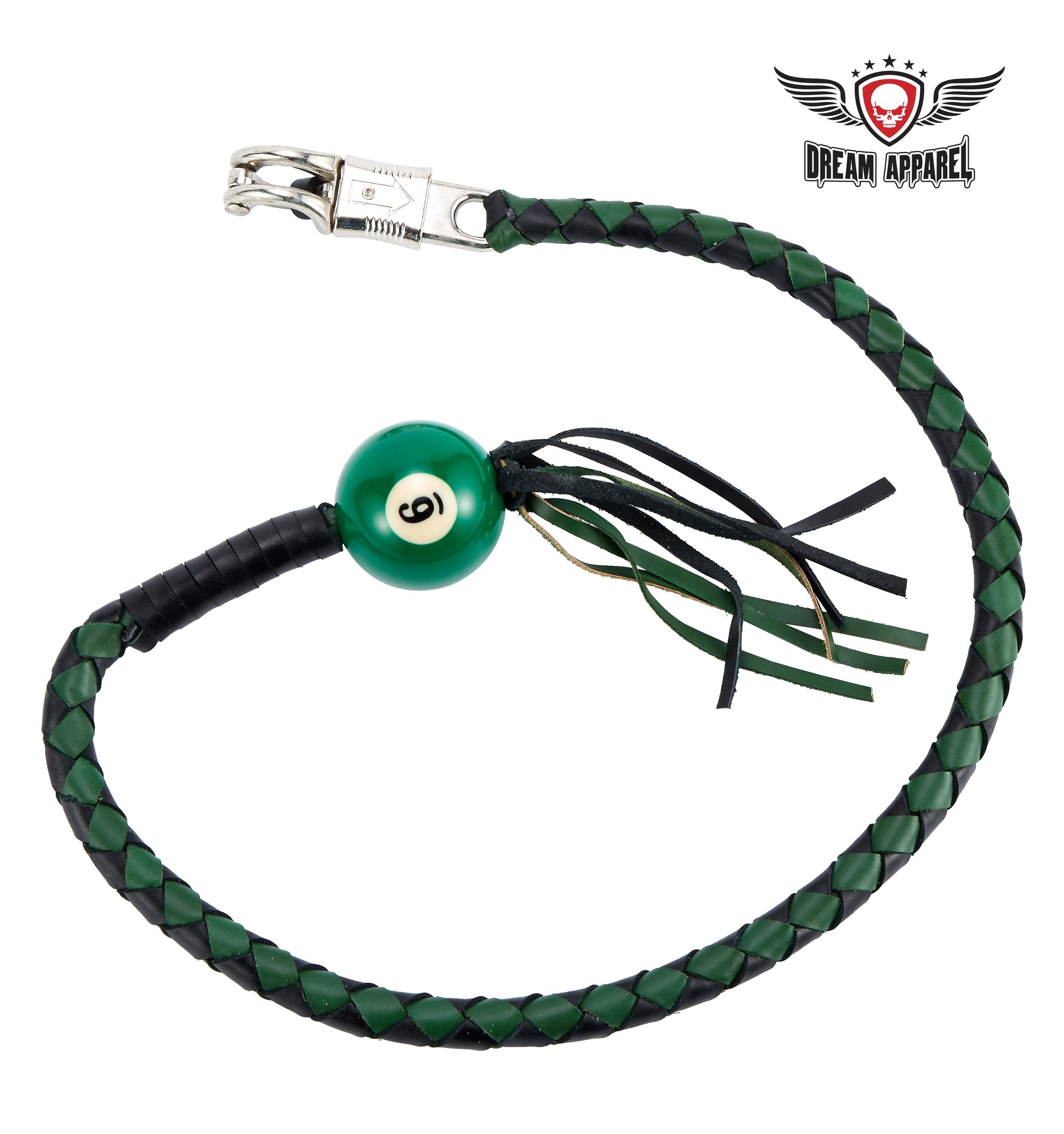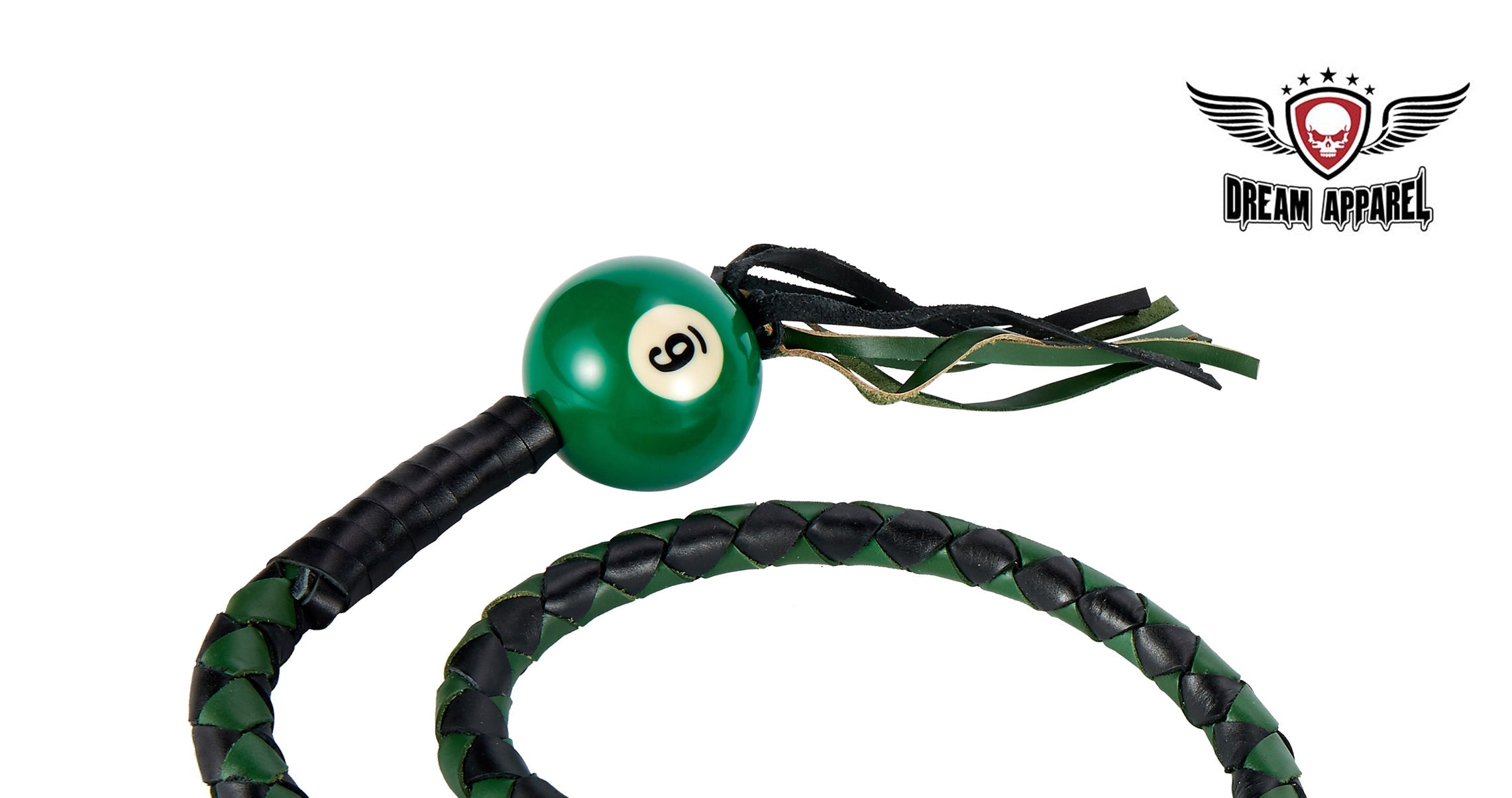 Black And Green Fringed Get Back Whip W/ Pool Ball