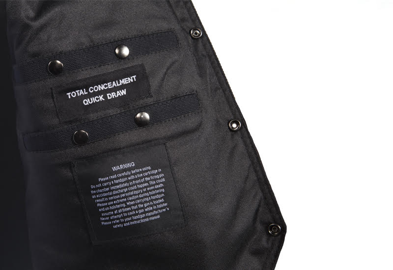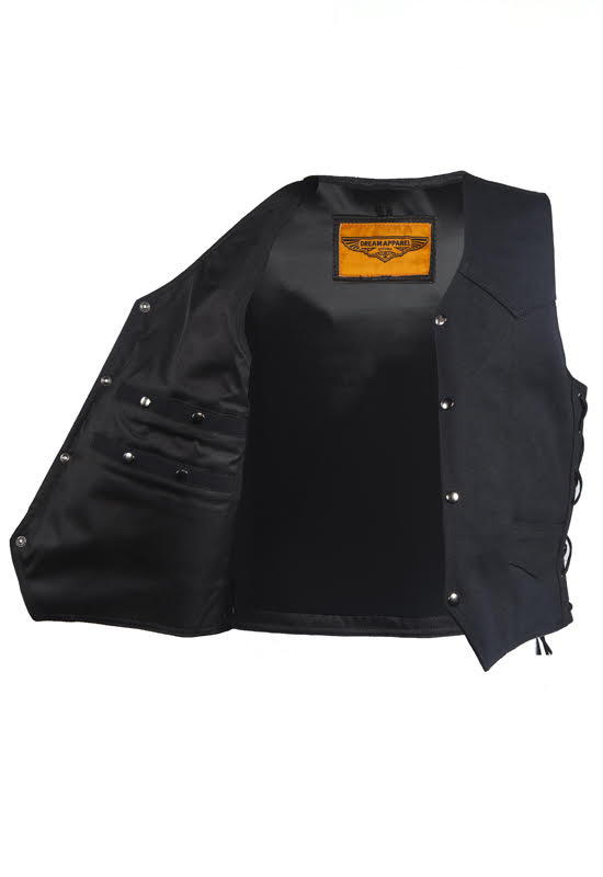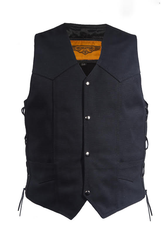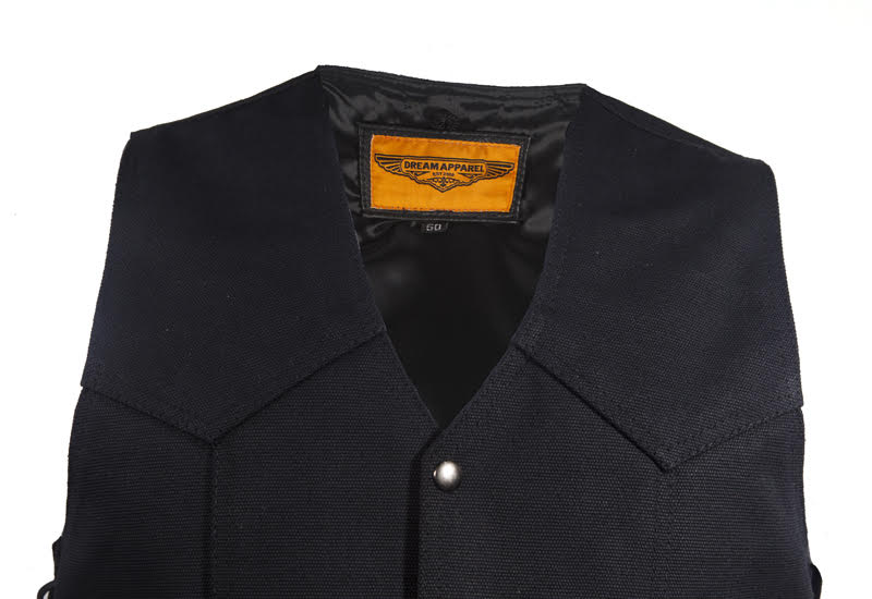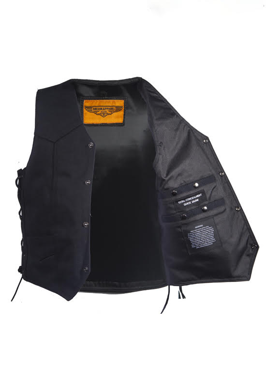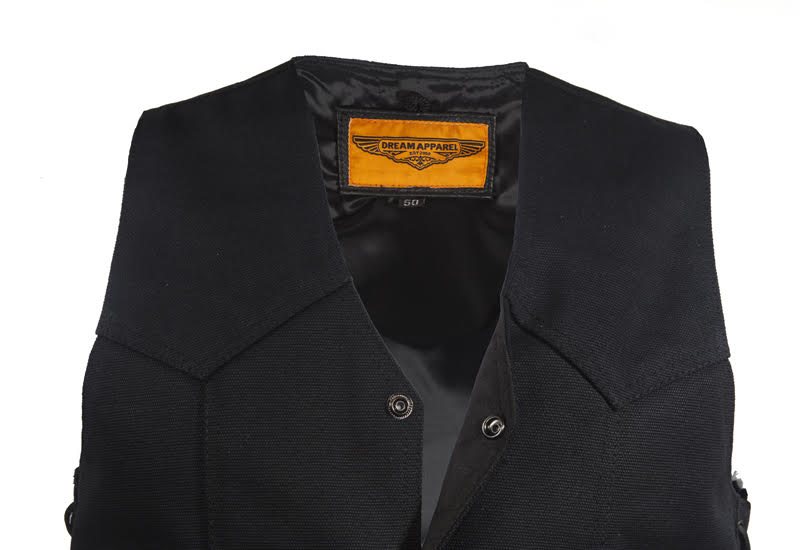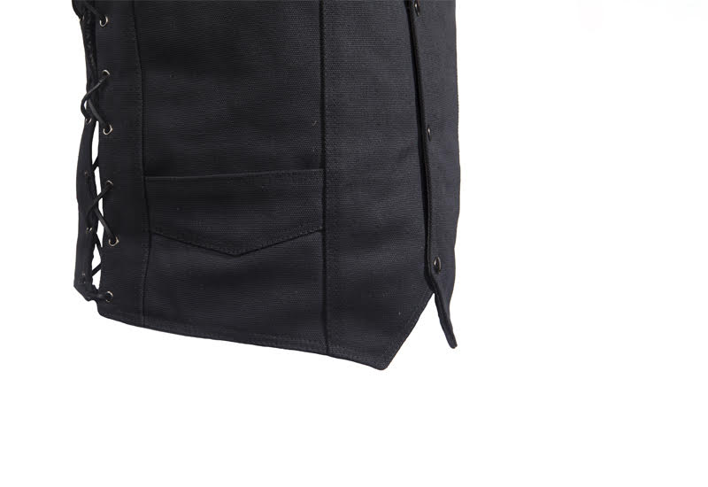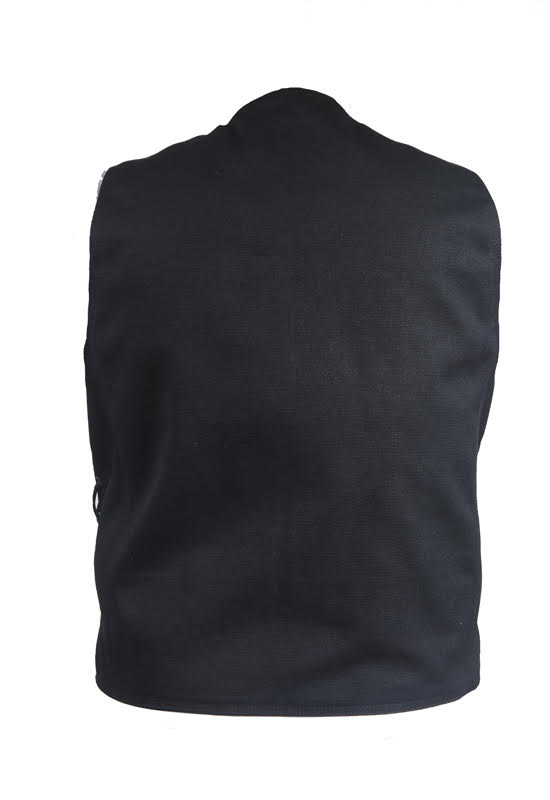 Mens Black Canvas Motorcycle Vest, Conceal Gun Pockets
