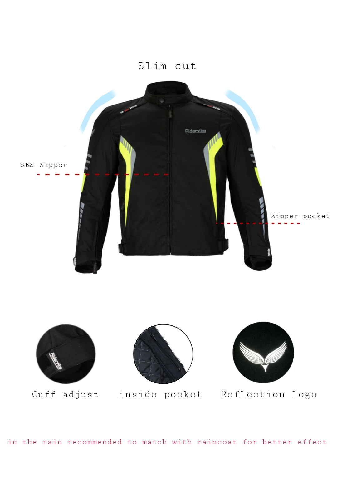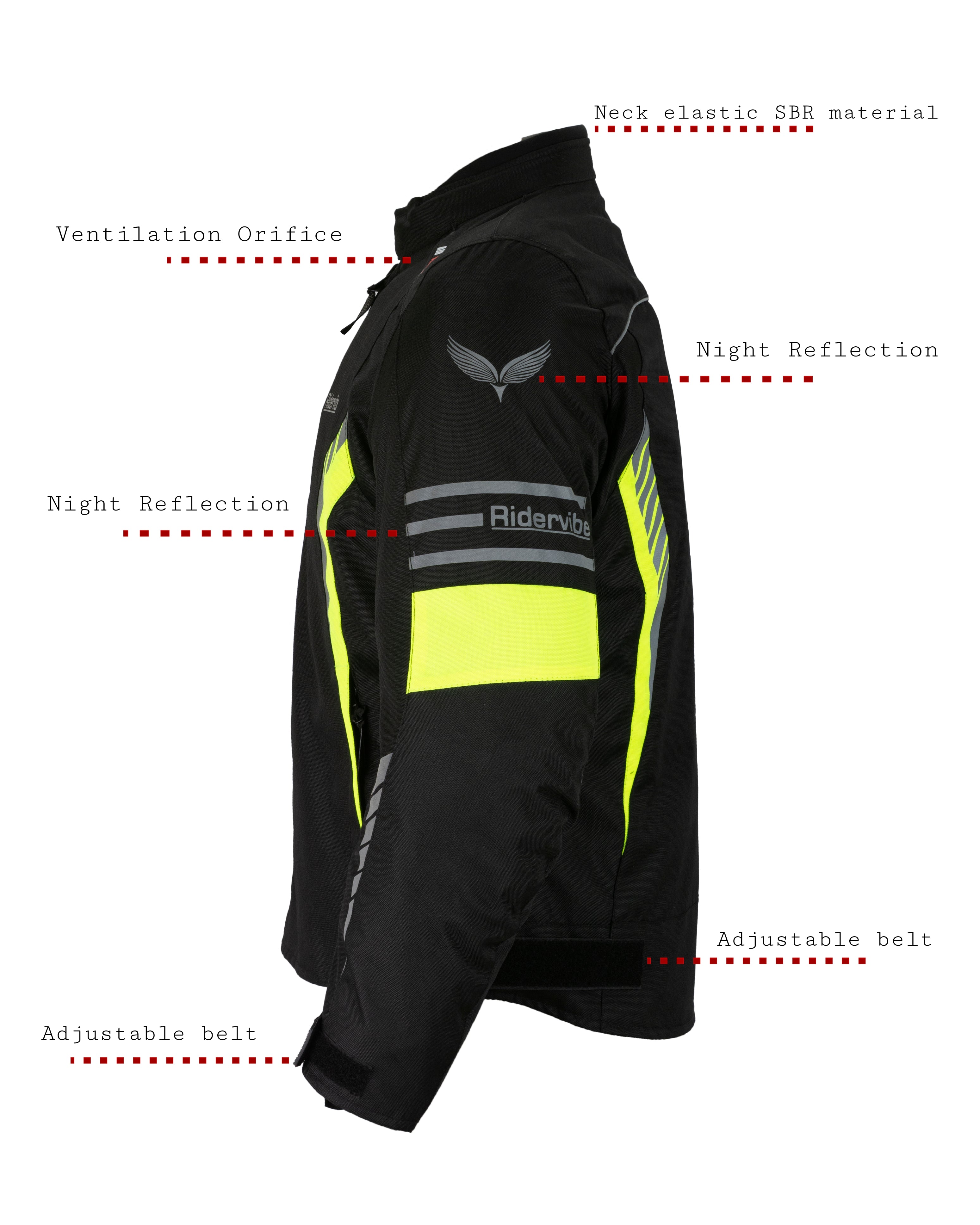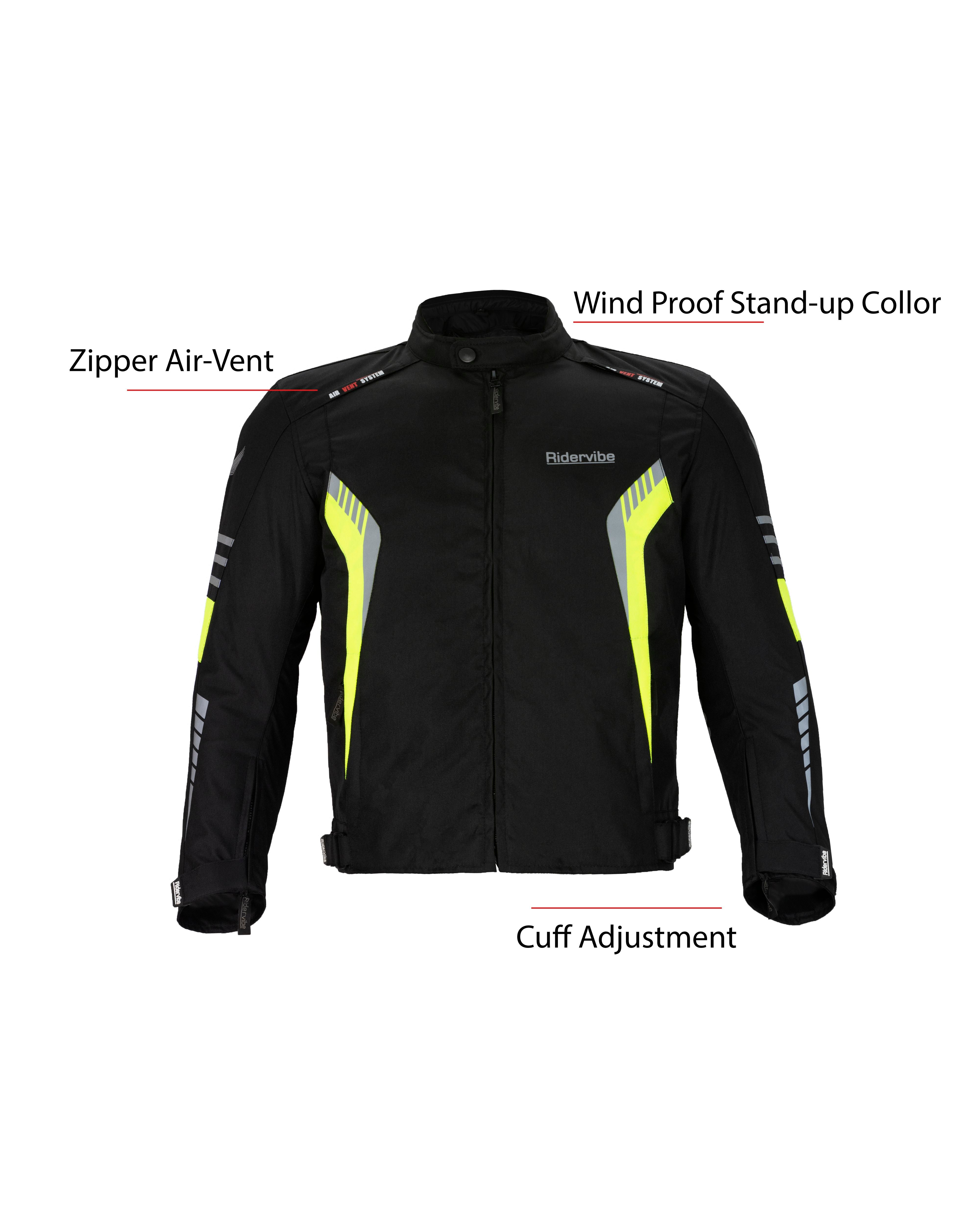 Dream Apparel Men's CE Armored Nylon & Mesh Motorcycle Neon and Black Waterproof Biker Jackets