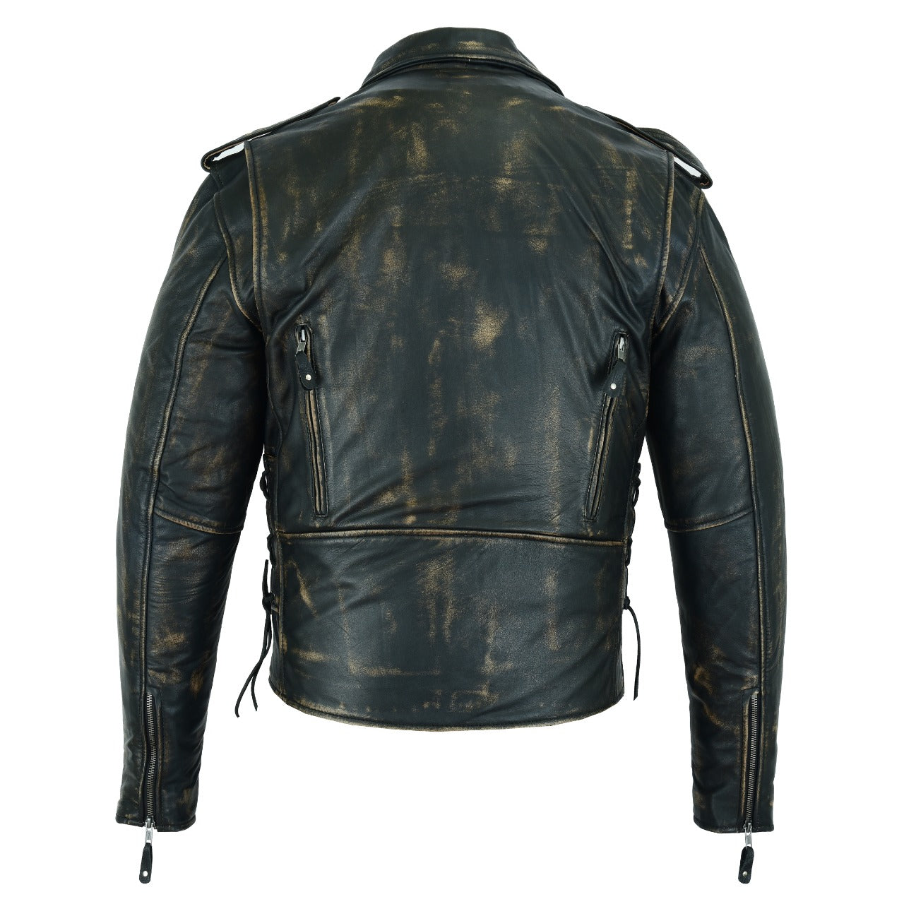 Dream Apparel Men's Distressed Brown Motorcycle Jacket with Conceal Carry Pockets