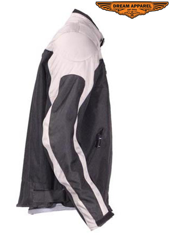 Mens Black and Silver Mesh and Nylon Motorcycle Jacket