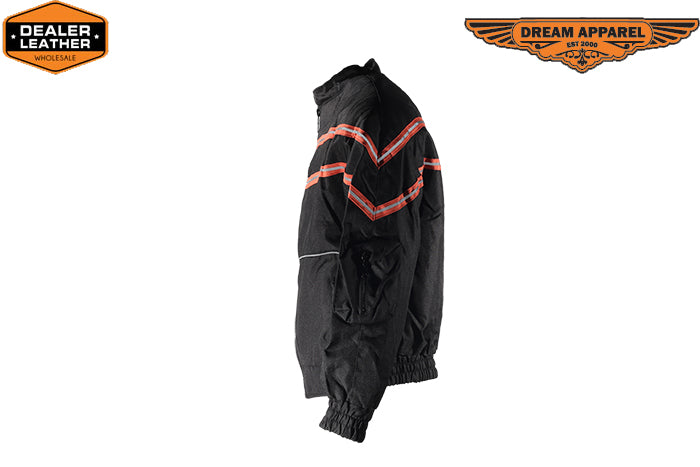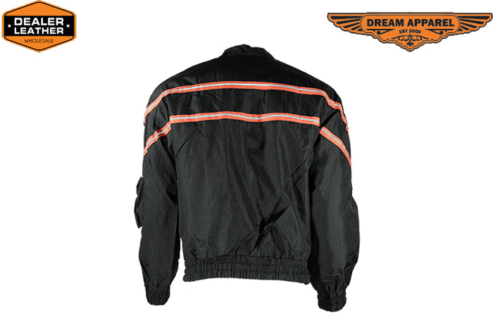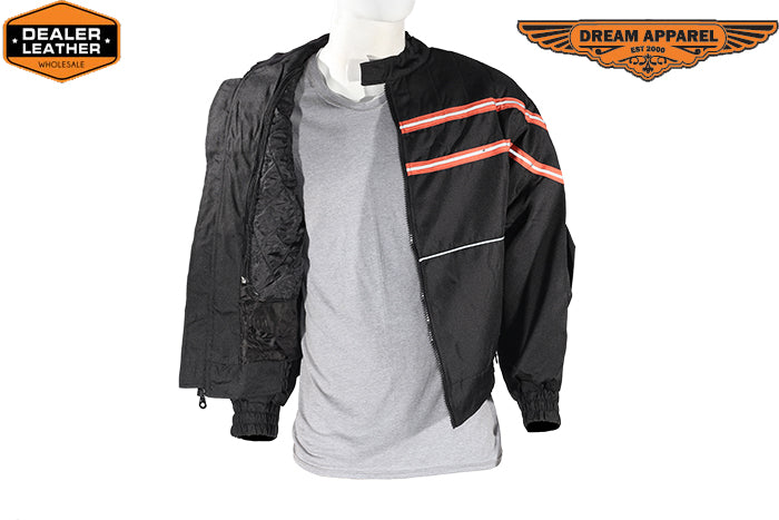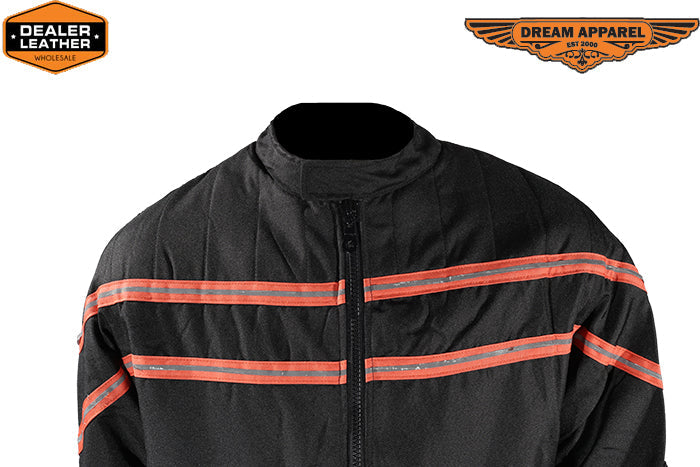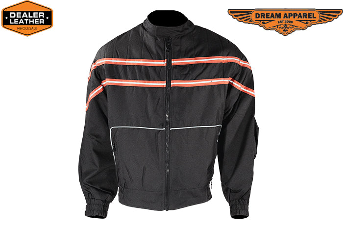 Men's Black Light Textile Motorcycle Jacket w/ Orange Stripe Across Design