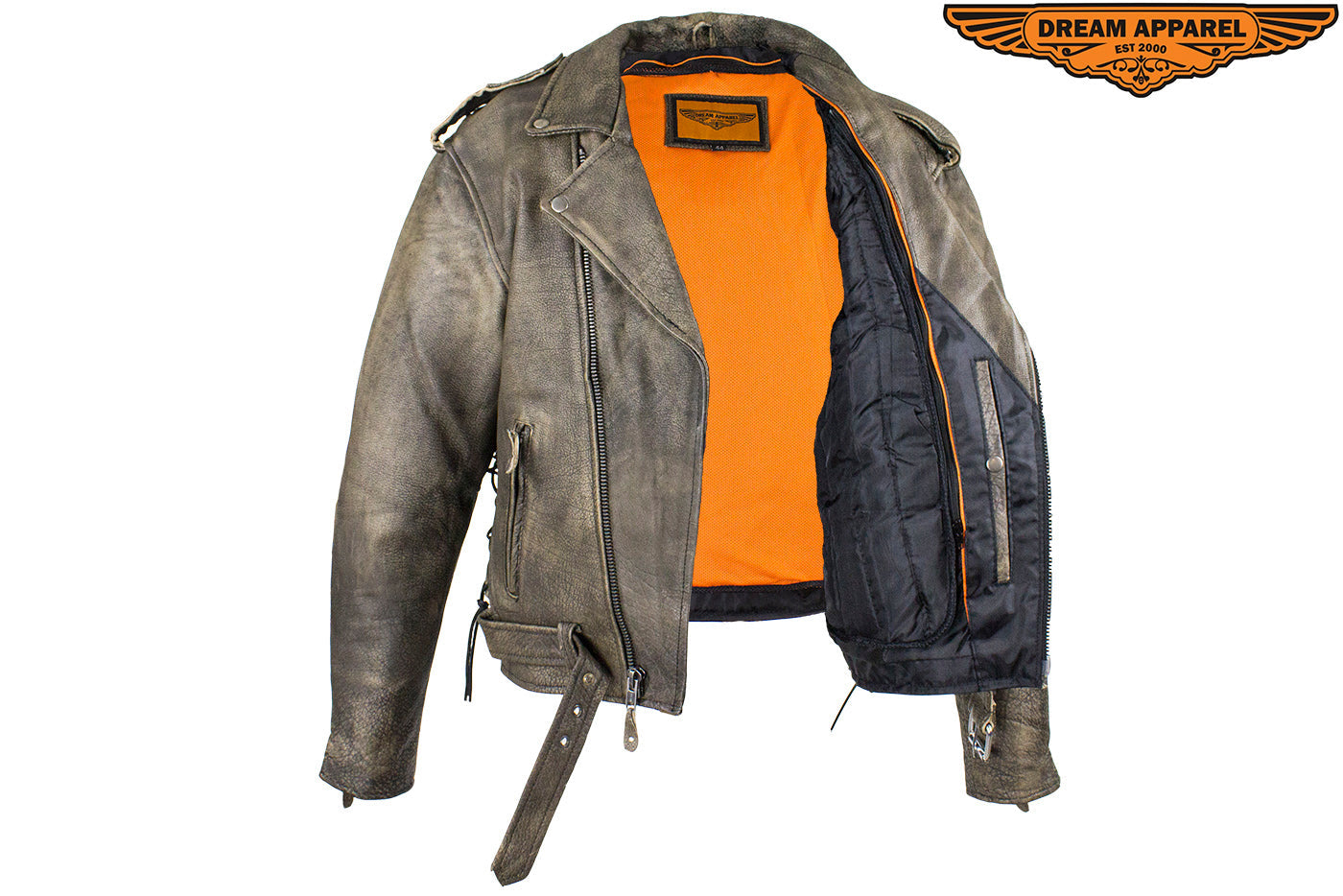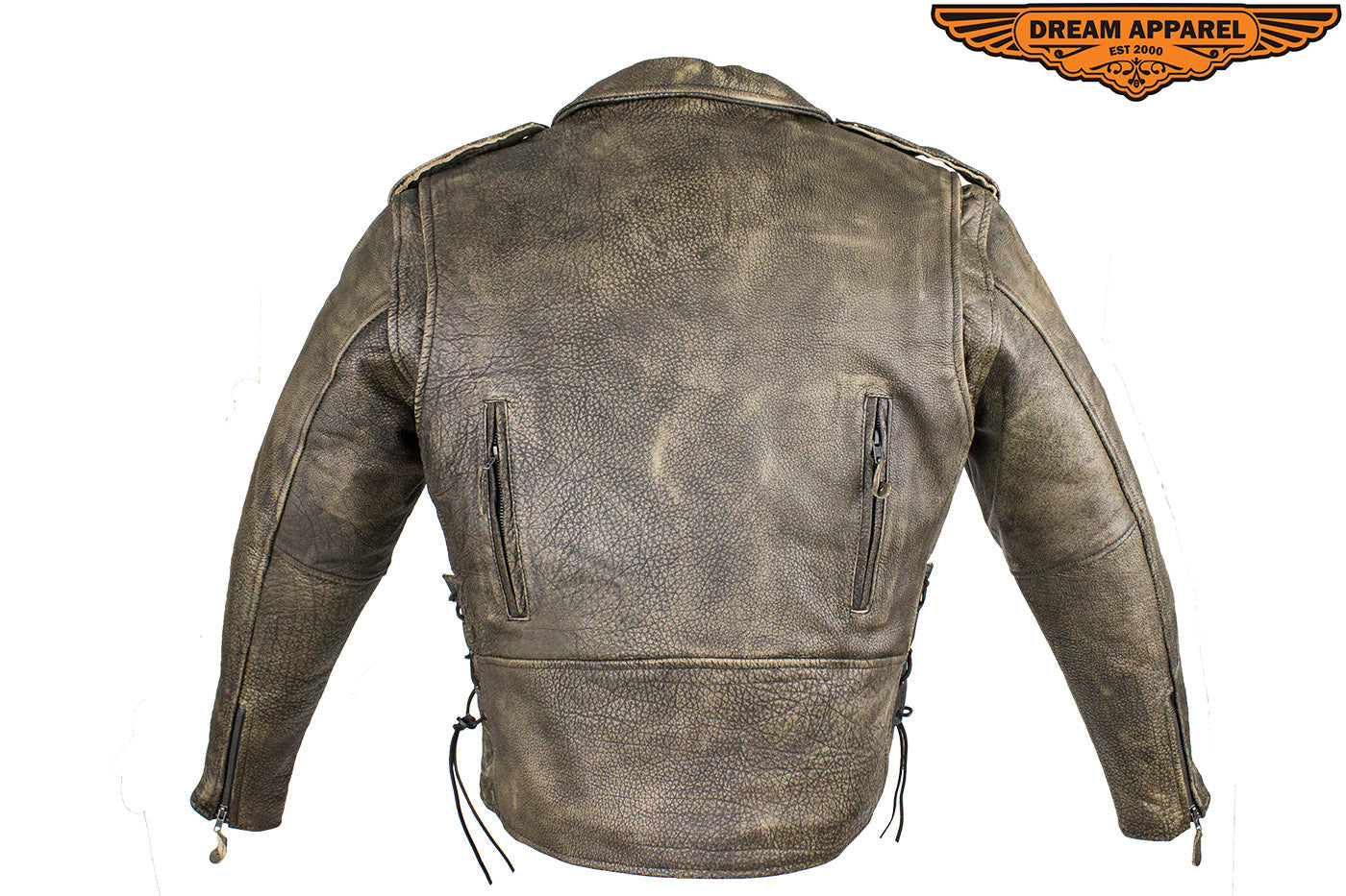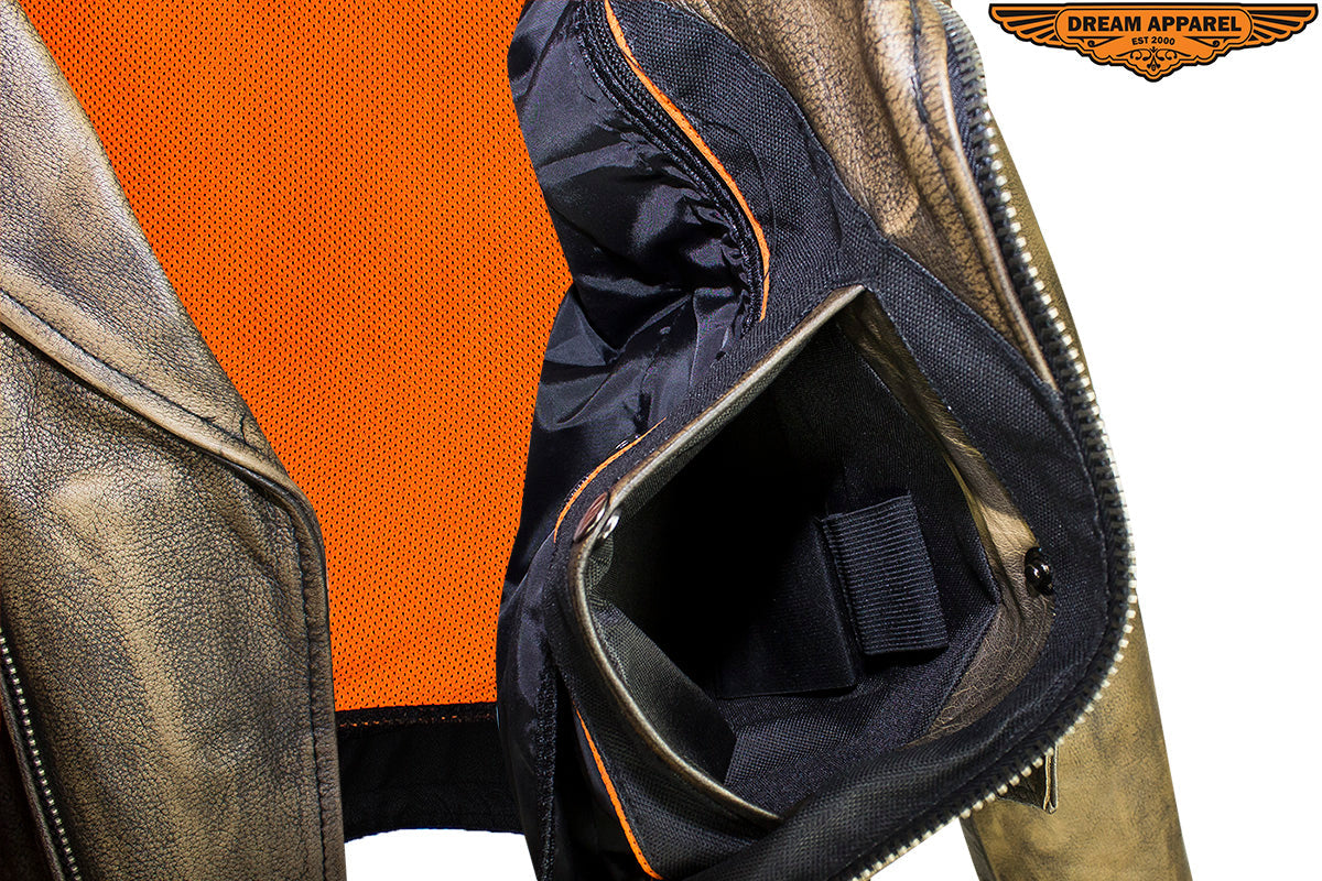 Men's Dark Brown Motorcycle Jacket with Gun Pockets
