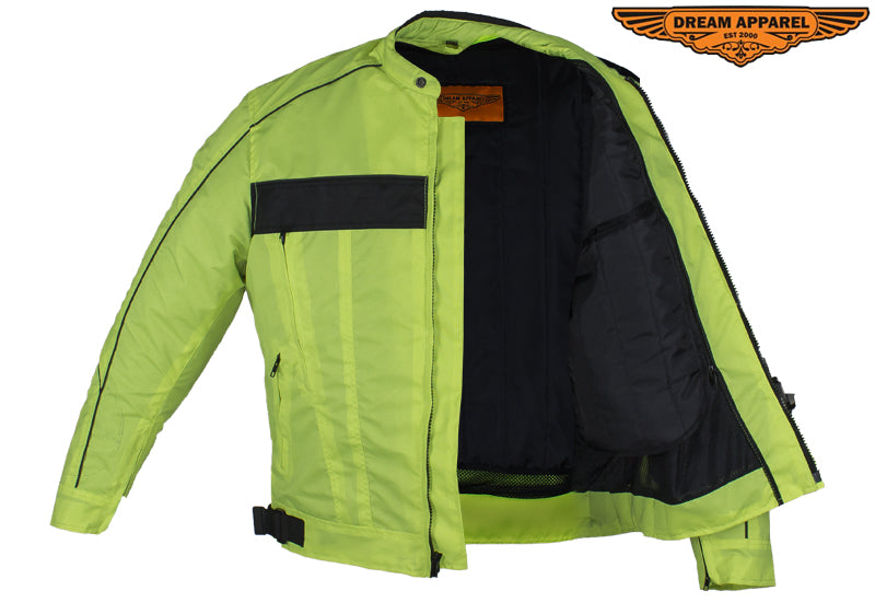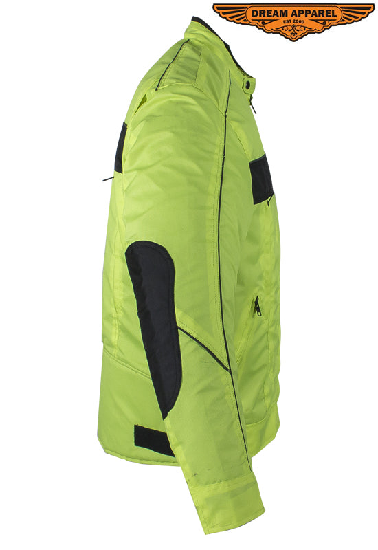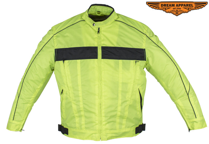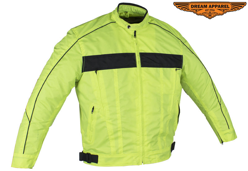 Men's Fluorescent Water Resistant Jacket with Reflective Piping