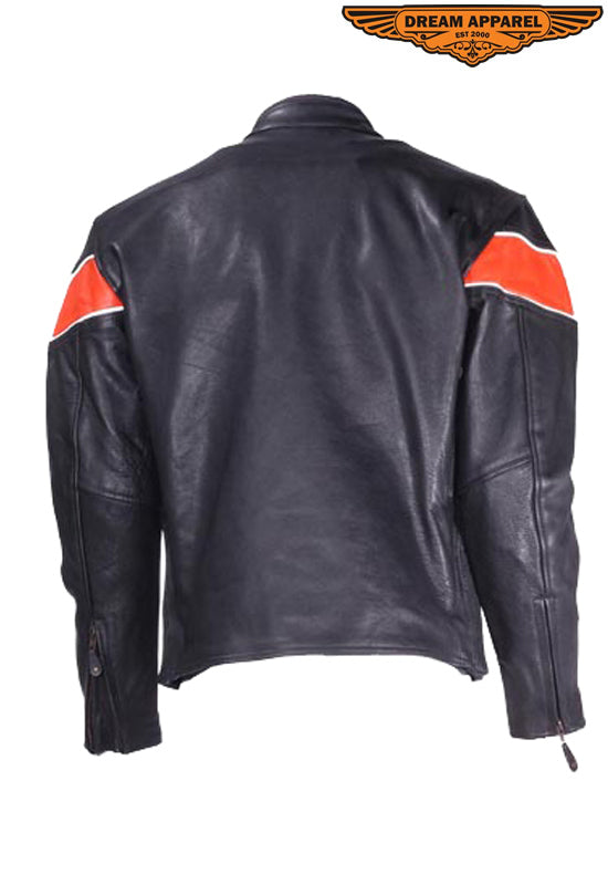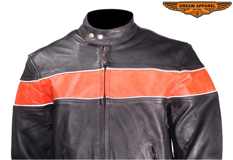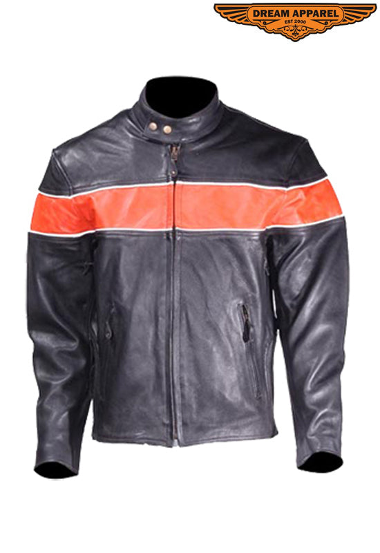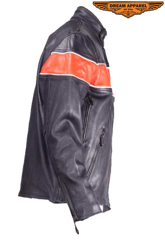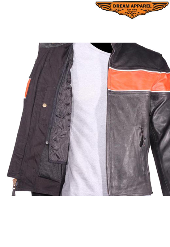 Mens Leather Jacket With One Orange Stripe
