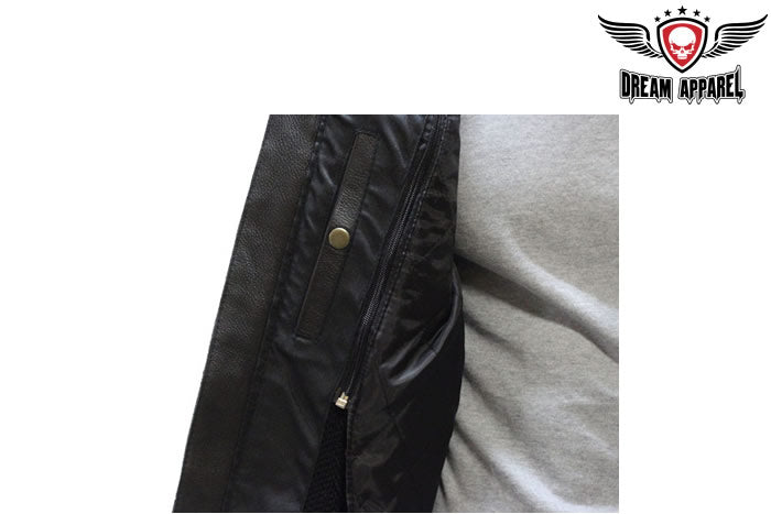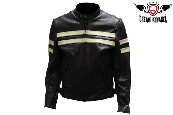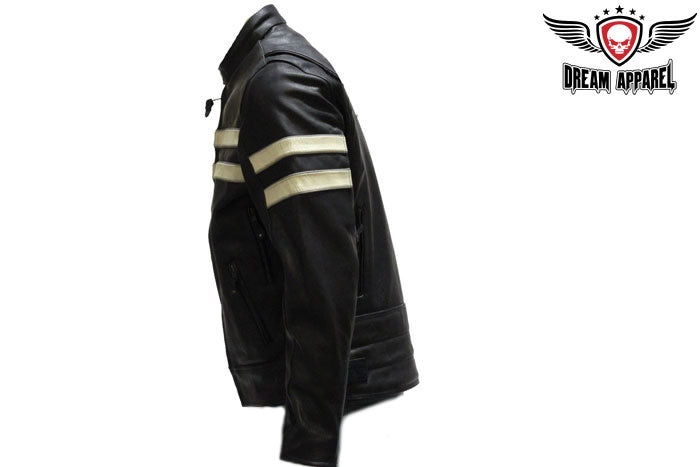 Mens Leather Jacket With Silver Stripes