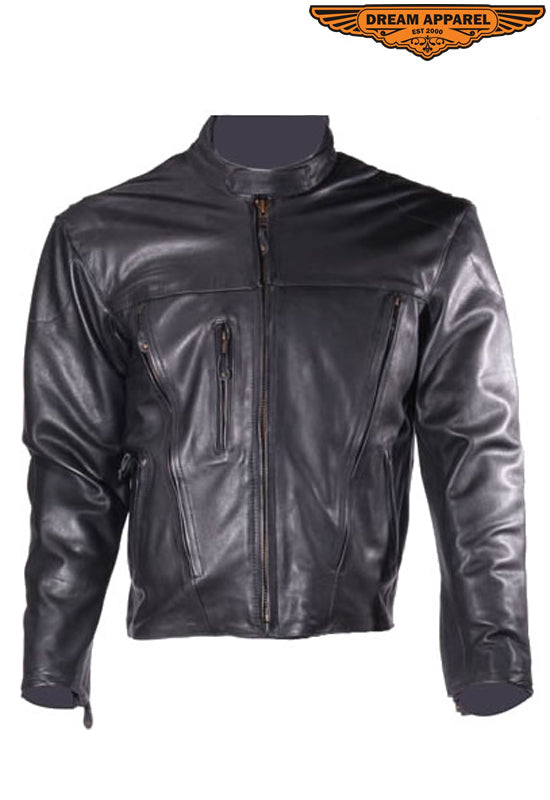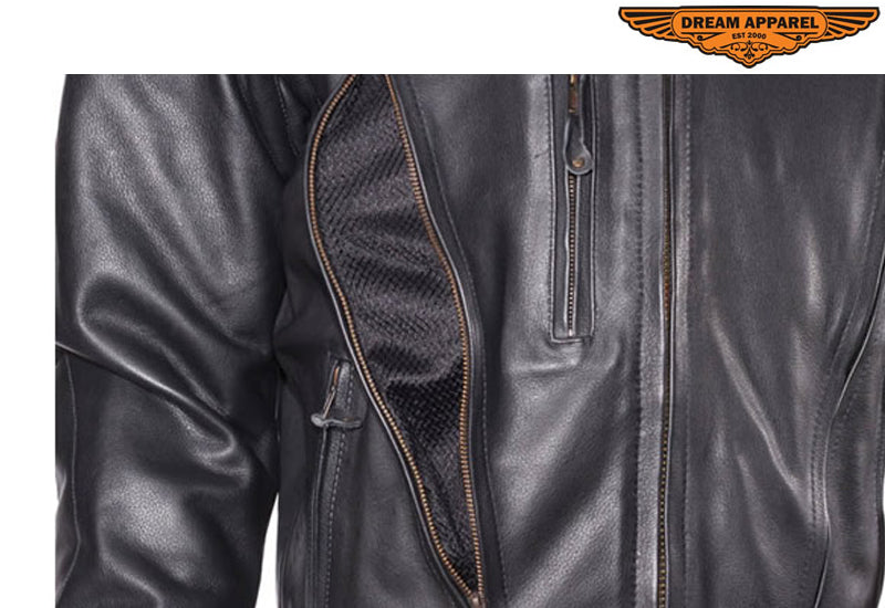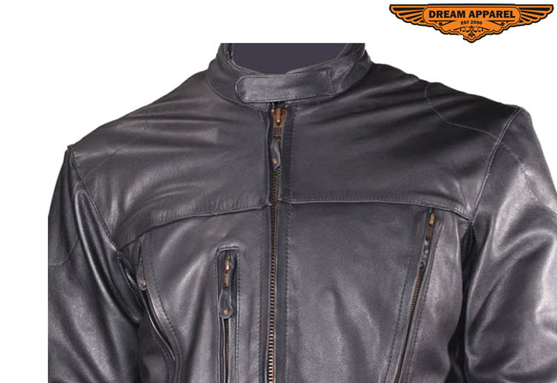 Mens Leather Motorcycle Jacket with Z/o Lining
