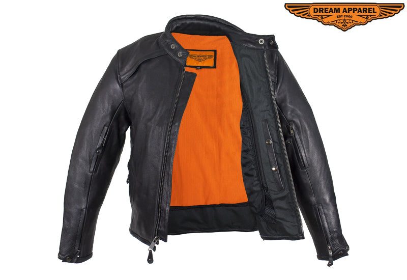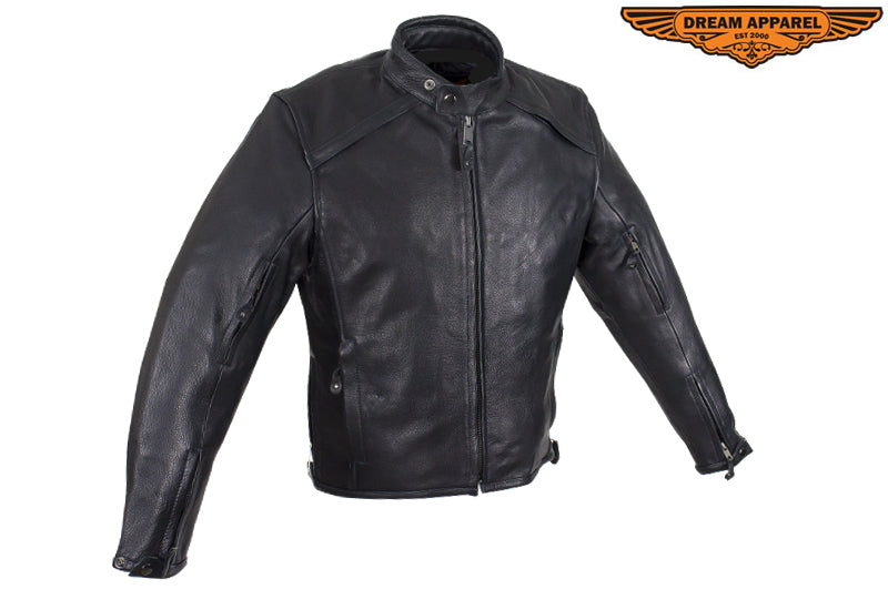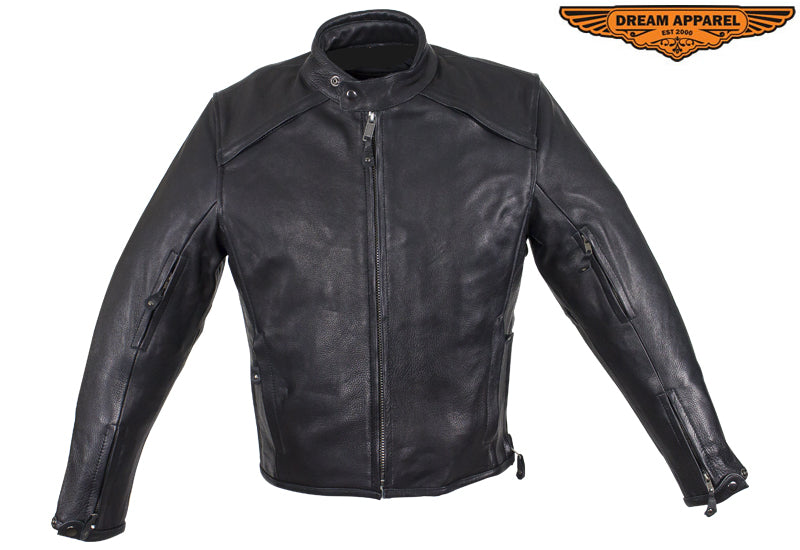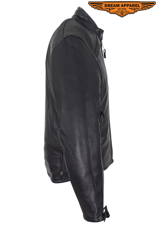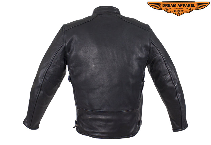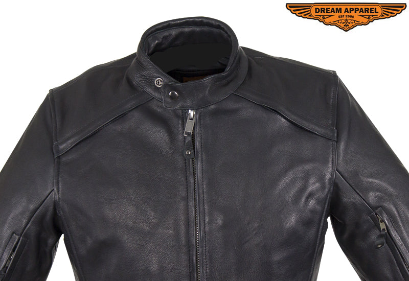 Mens Top Grade Leather Motorcycle Jacket With Sleek Collar