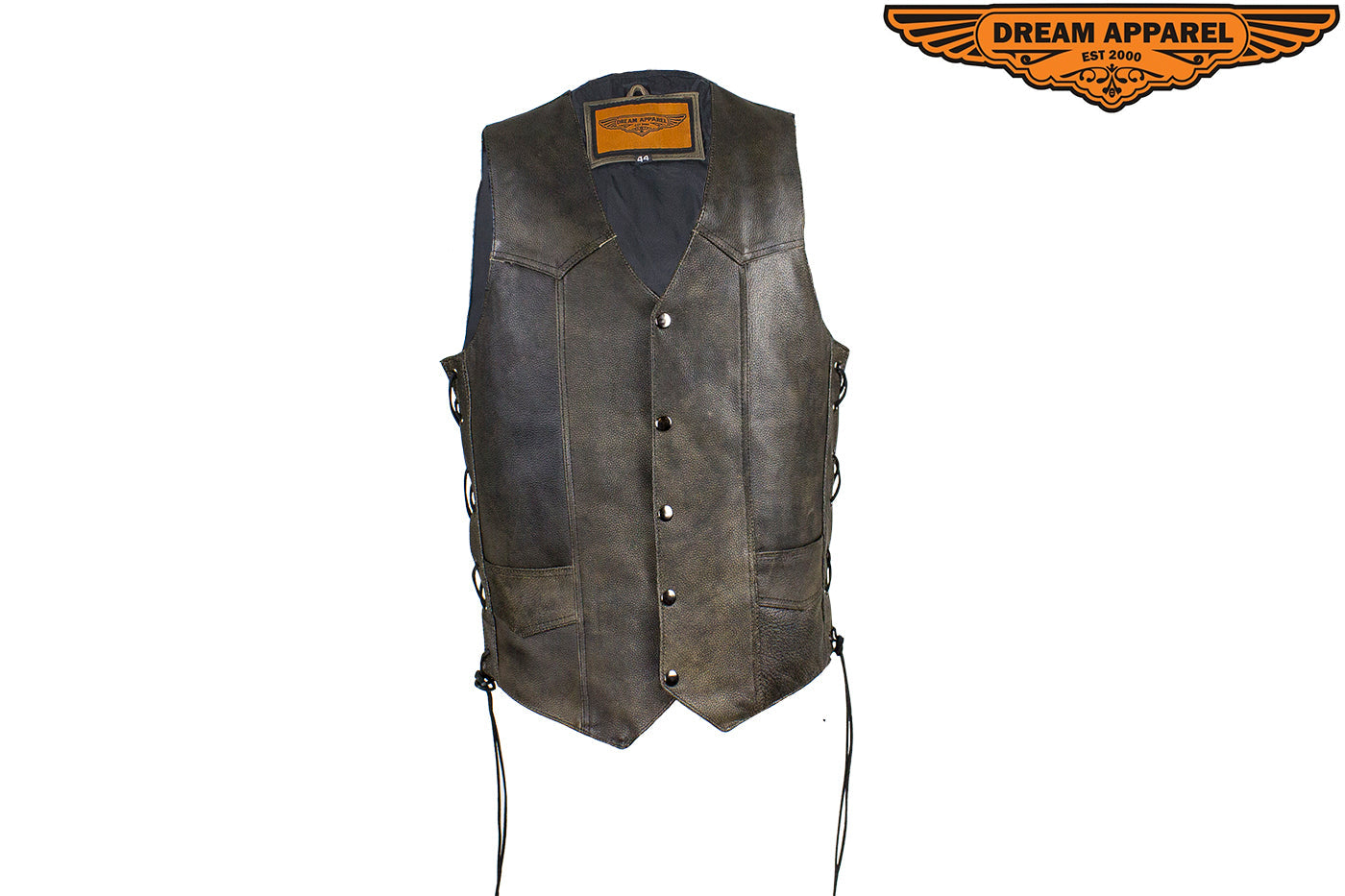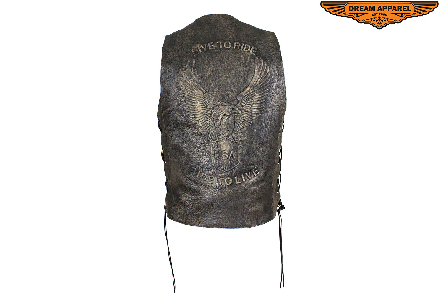 Dream Apparel Men's Brown Leather Vest with Live to Ride