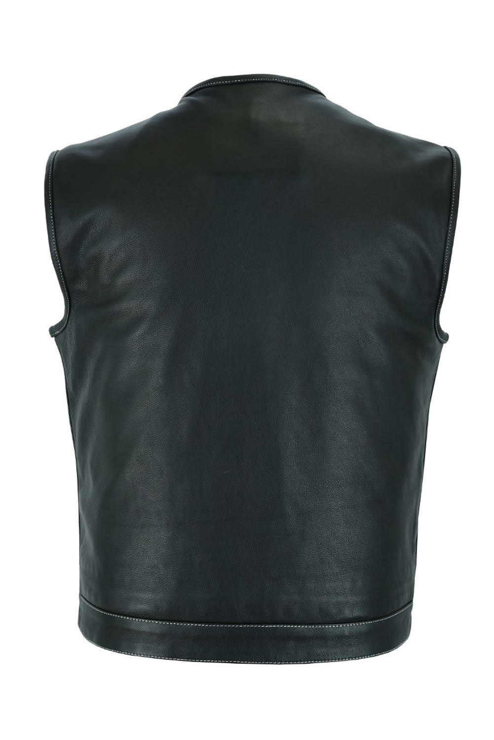 Dream Apparel Mens Club Vest Black Paisley Liner, White Thread Front Zipper Conceal Gun Pockets