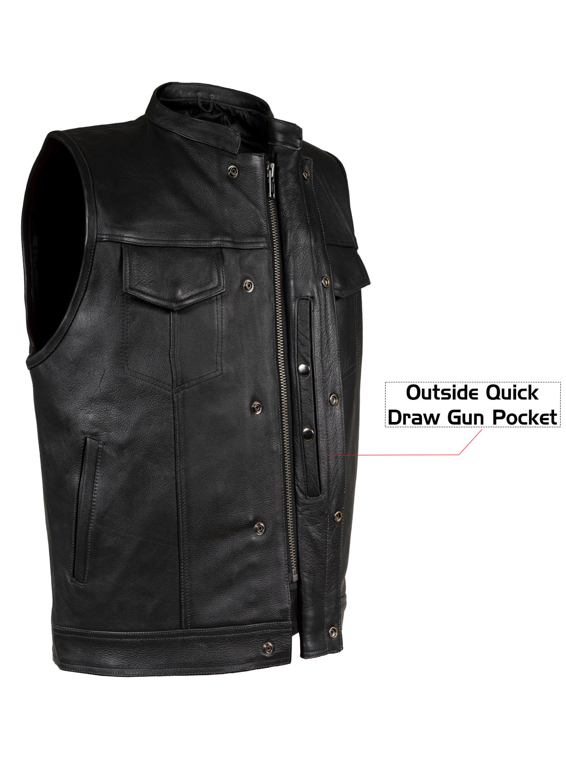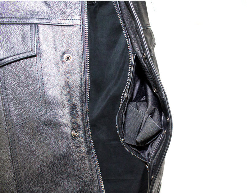 Dream Apparel Mens Motorcycle CLUB VEST Naked Cowhide Leather, Concealed Gun Pockets