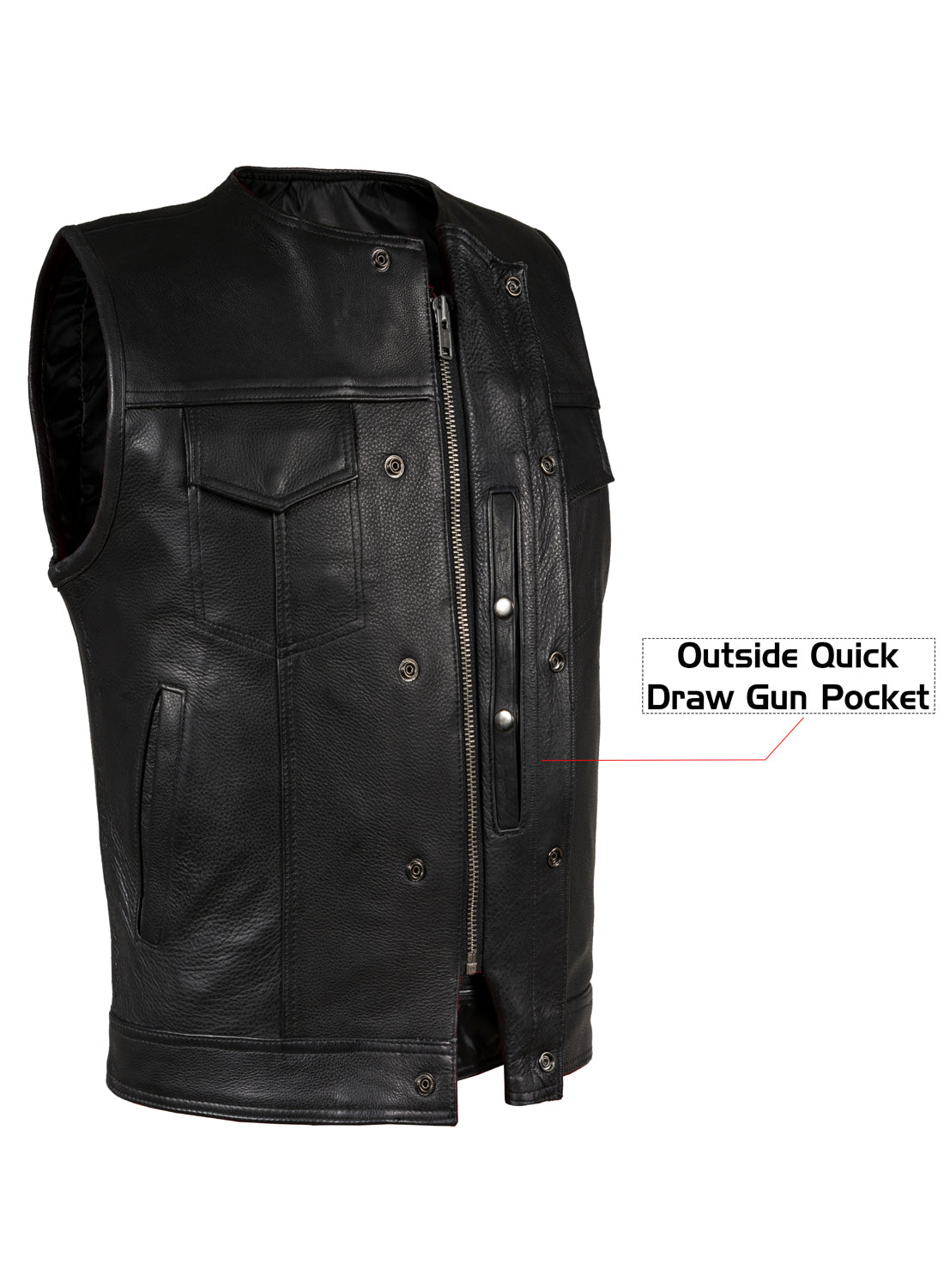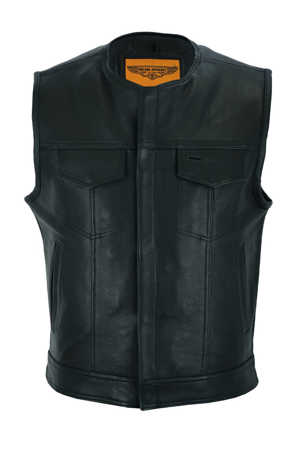 Dream Apparel Men's Motorcycle Collarless CLUB VEST Black Liner & Zipper Front Closure