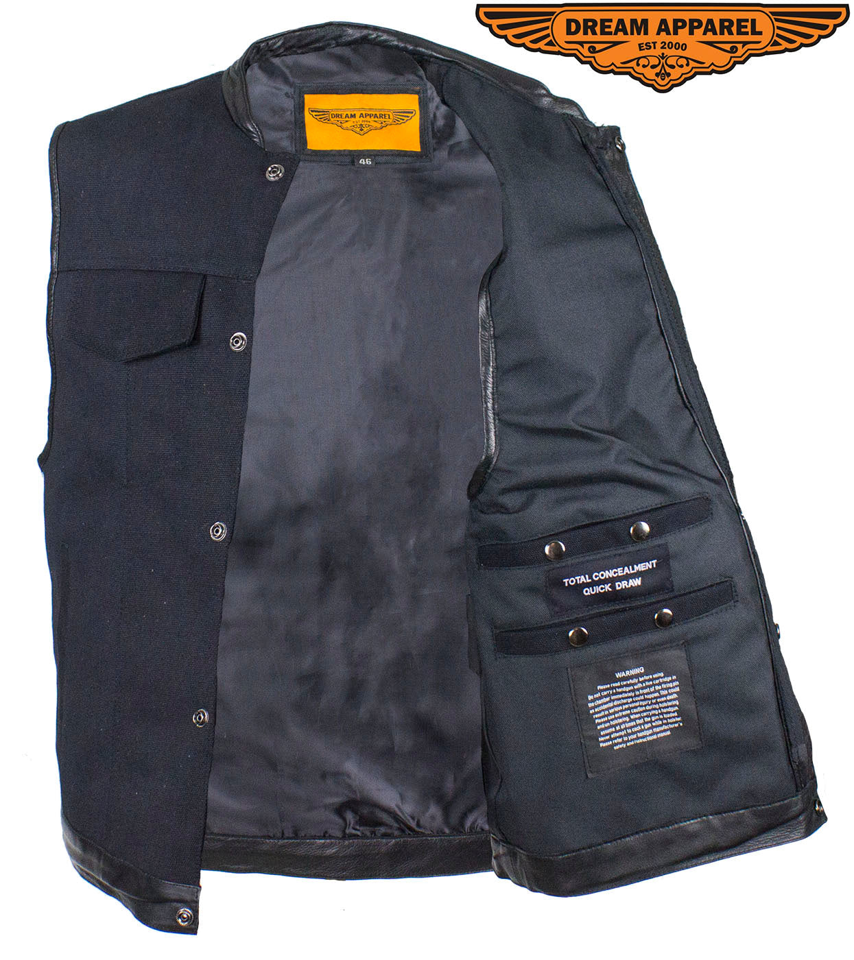 Mens Black Canvas Motorcycle Vest