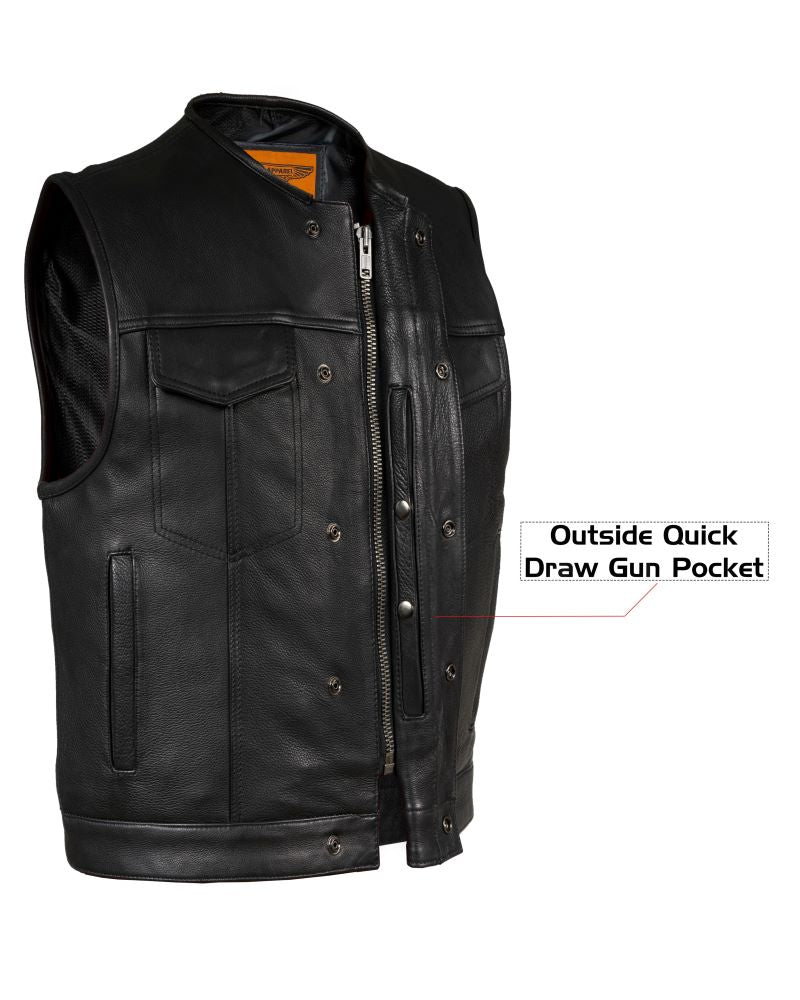Mens Club Vest Low Cut - Mens Leather Motorcycle Club Vest® Conceal Gun Pockets