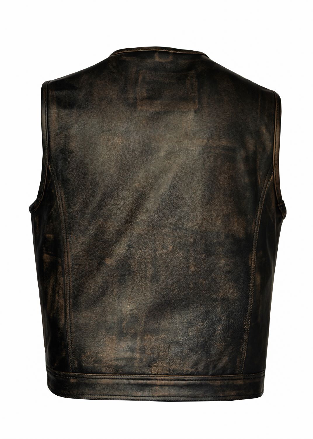 Men's Distressed Brown Leather Motorcycle Club Vest