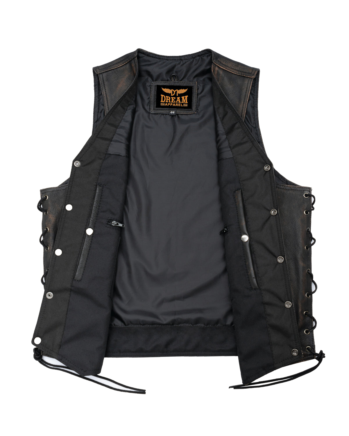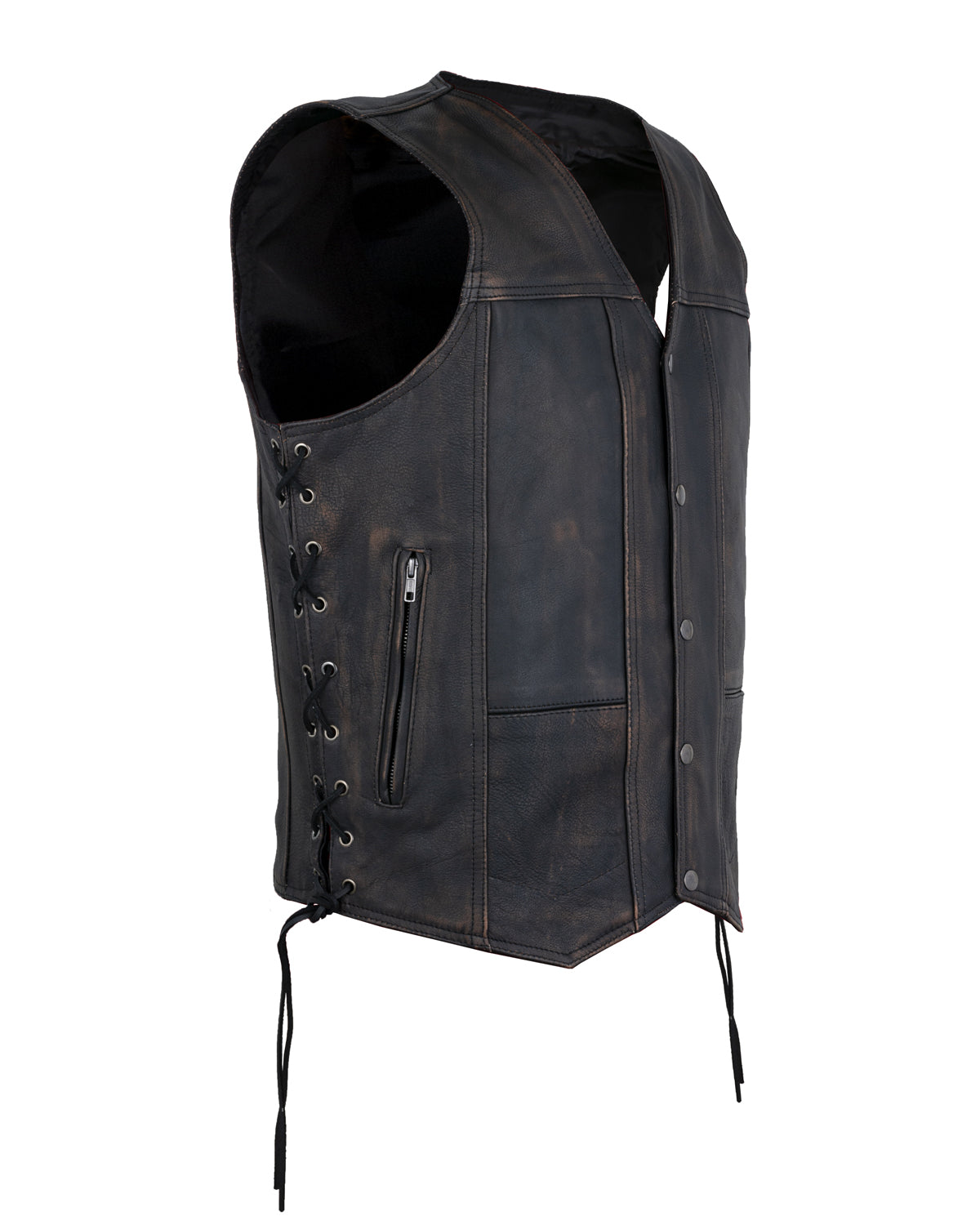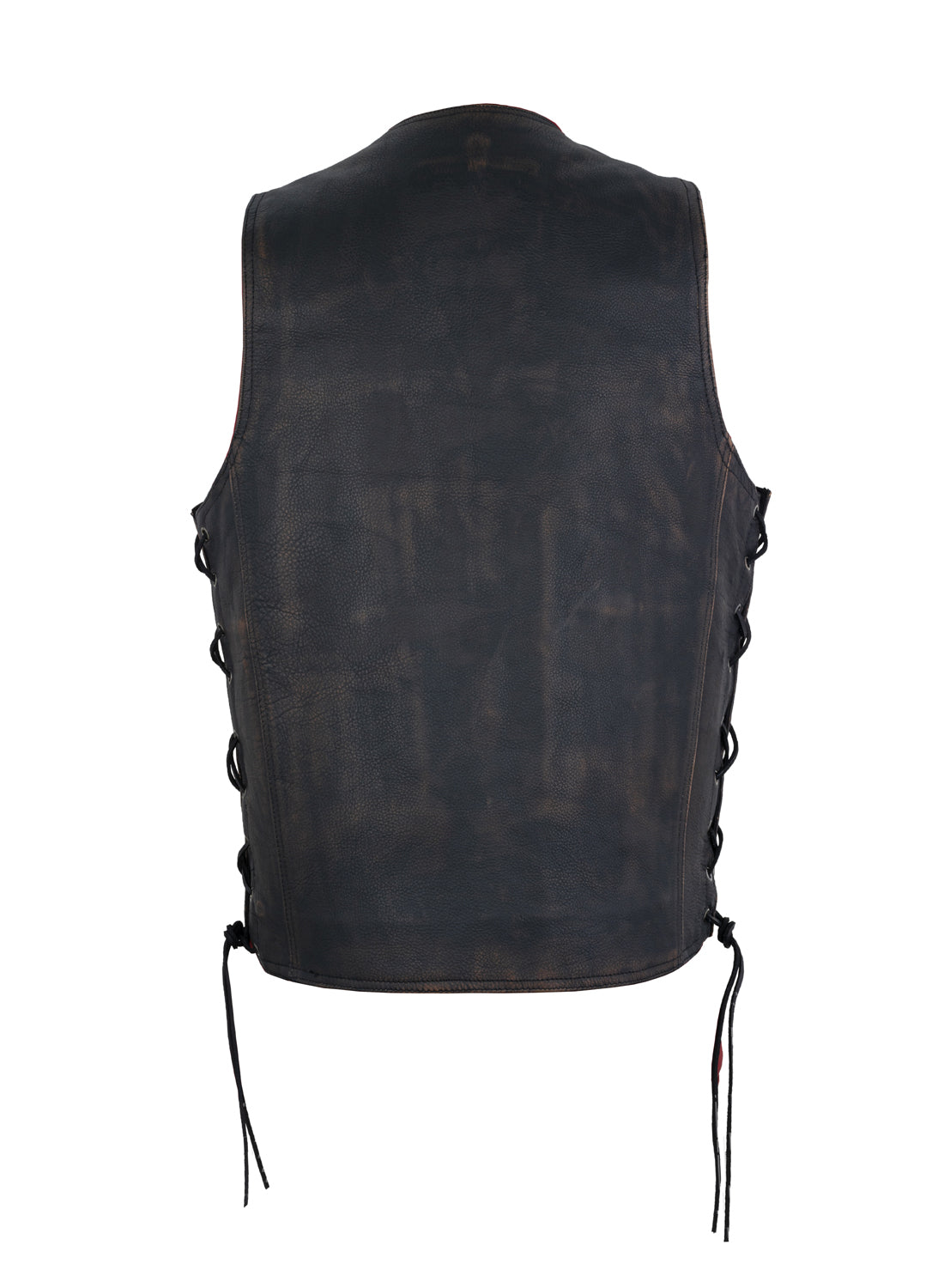 Mens Distressed Brown Motorcycle 10 Pockets Vest Premium Naked Cowhide Leather