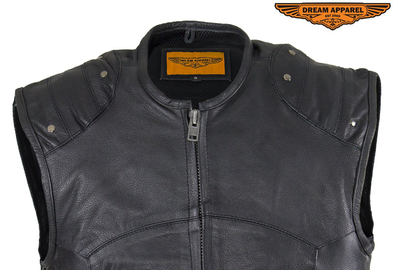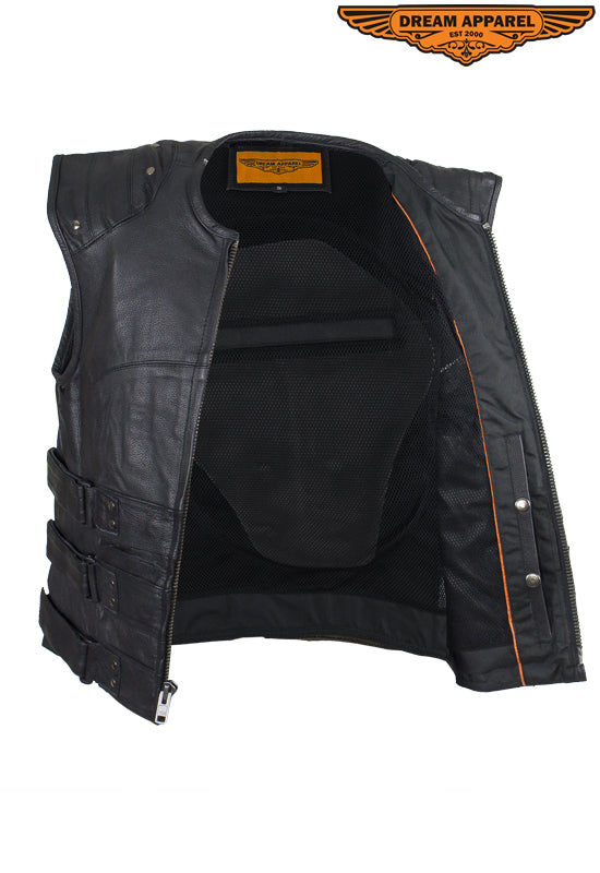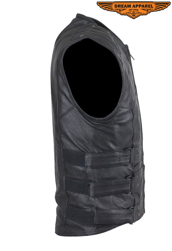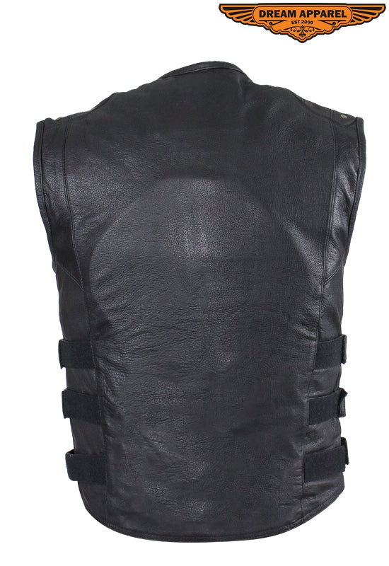 Mens Genuine Leather Replica Swat Vest With Gun Pocket