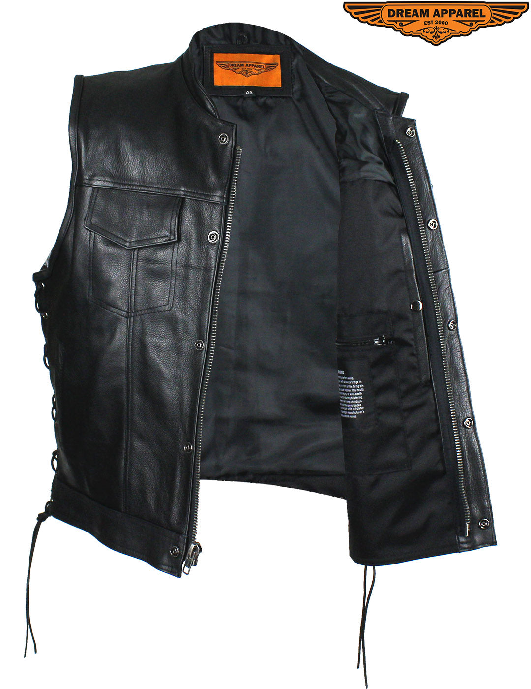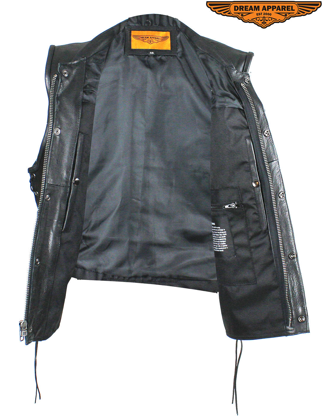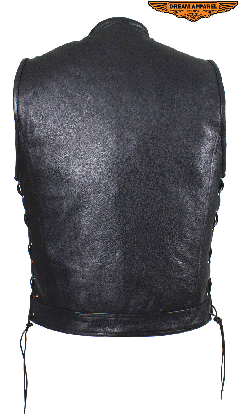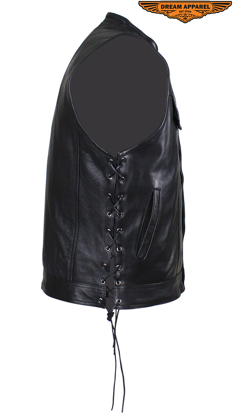 Men's Leather Conceal Carry Pocket Vest with Side Laces
