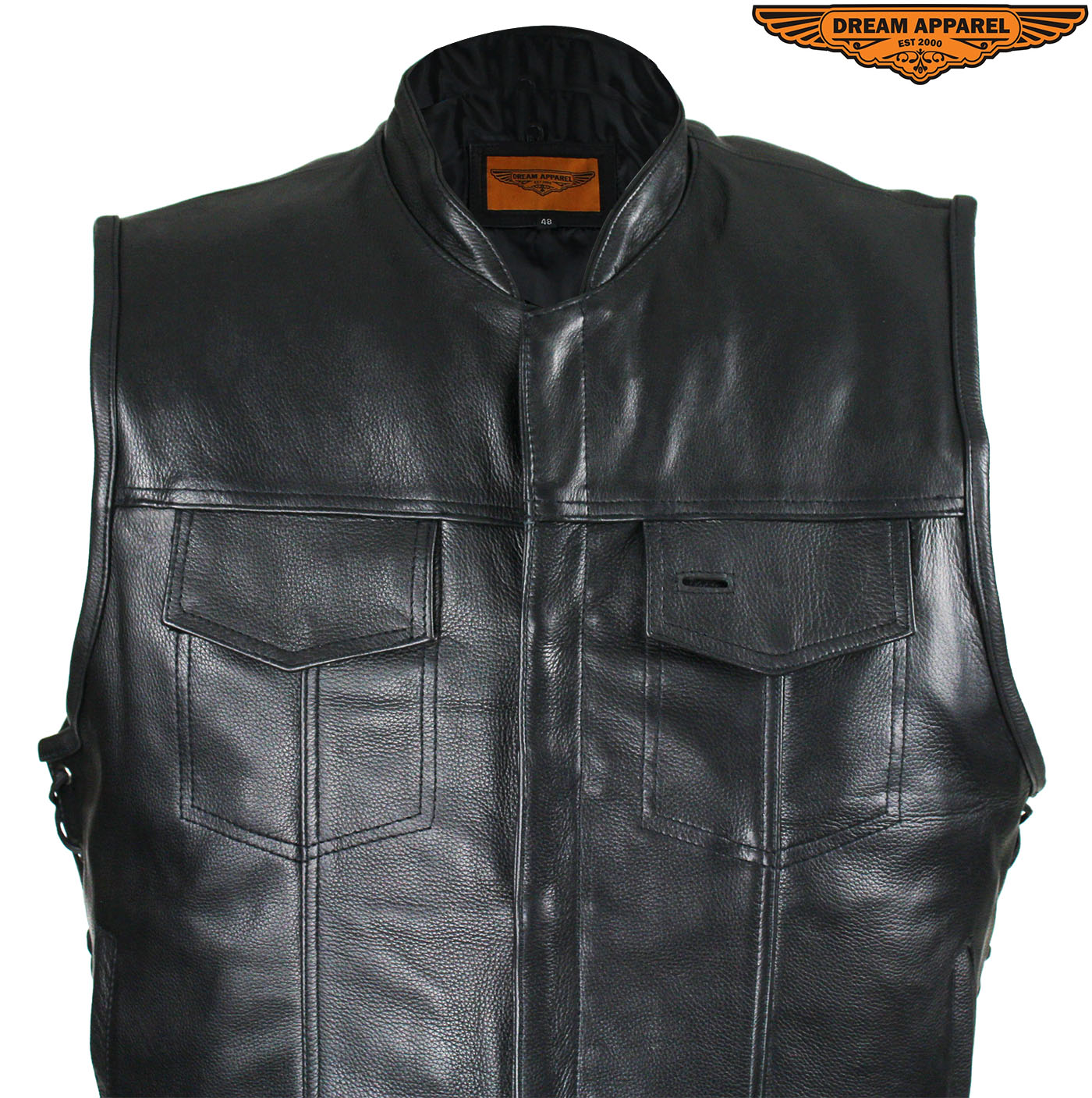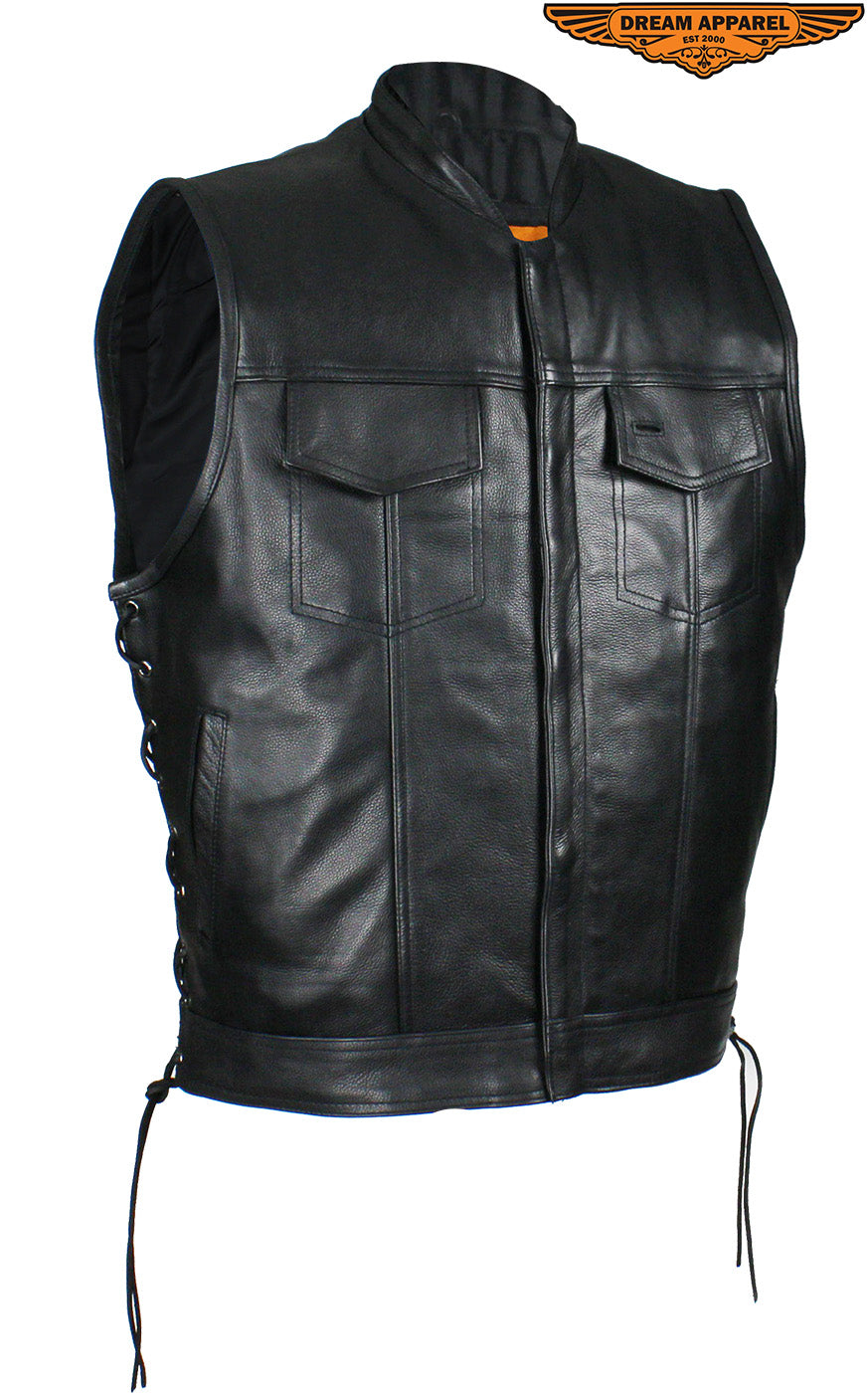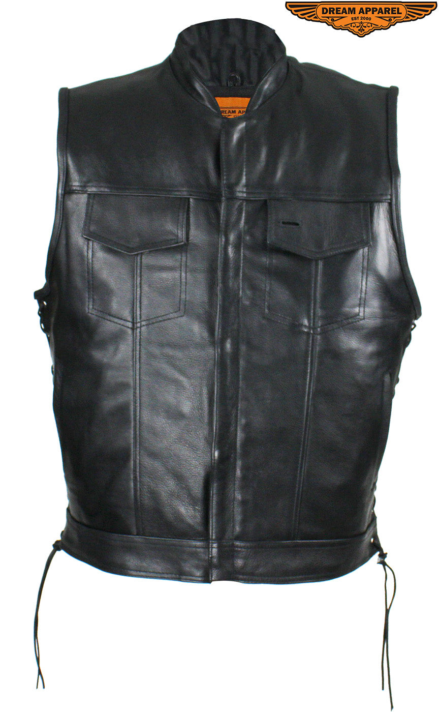 Men's Leather Conceal Carry Pocket Vest with Side Laces