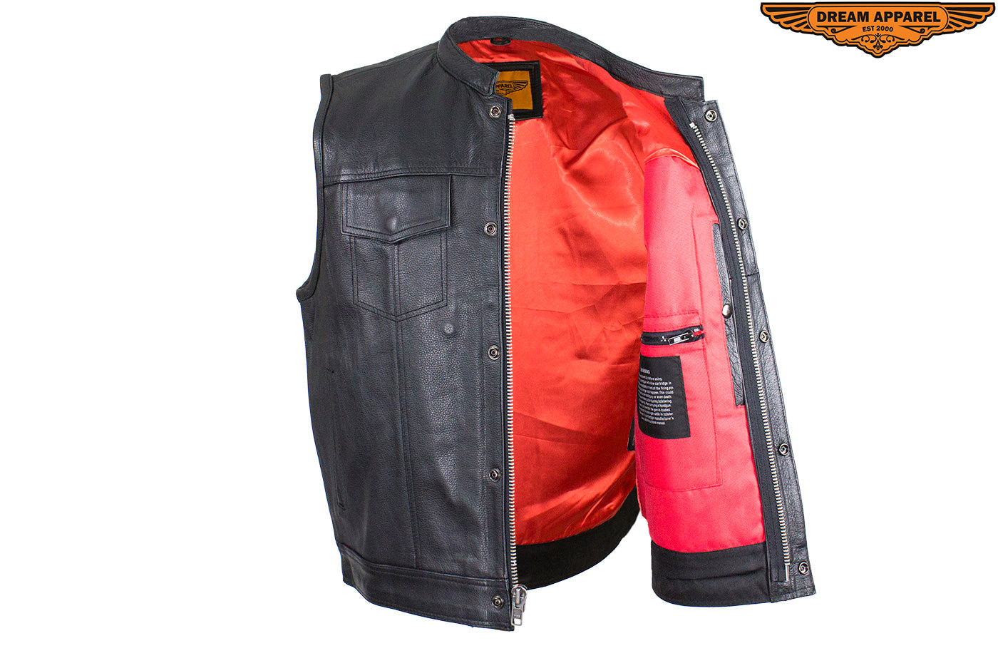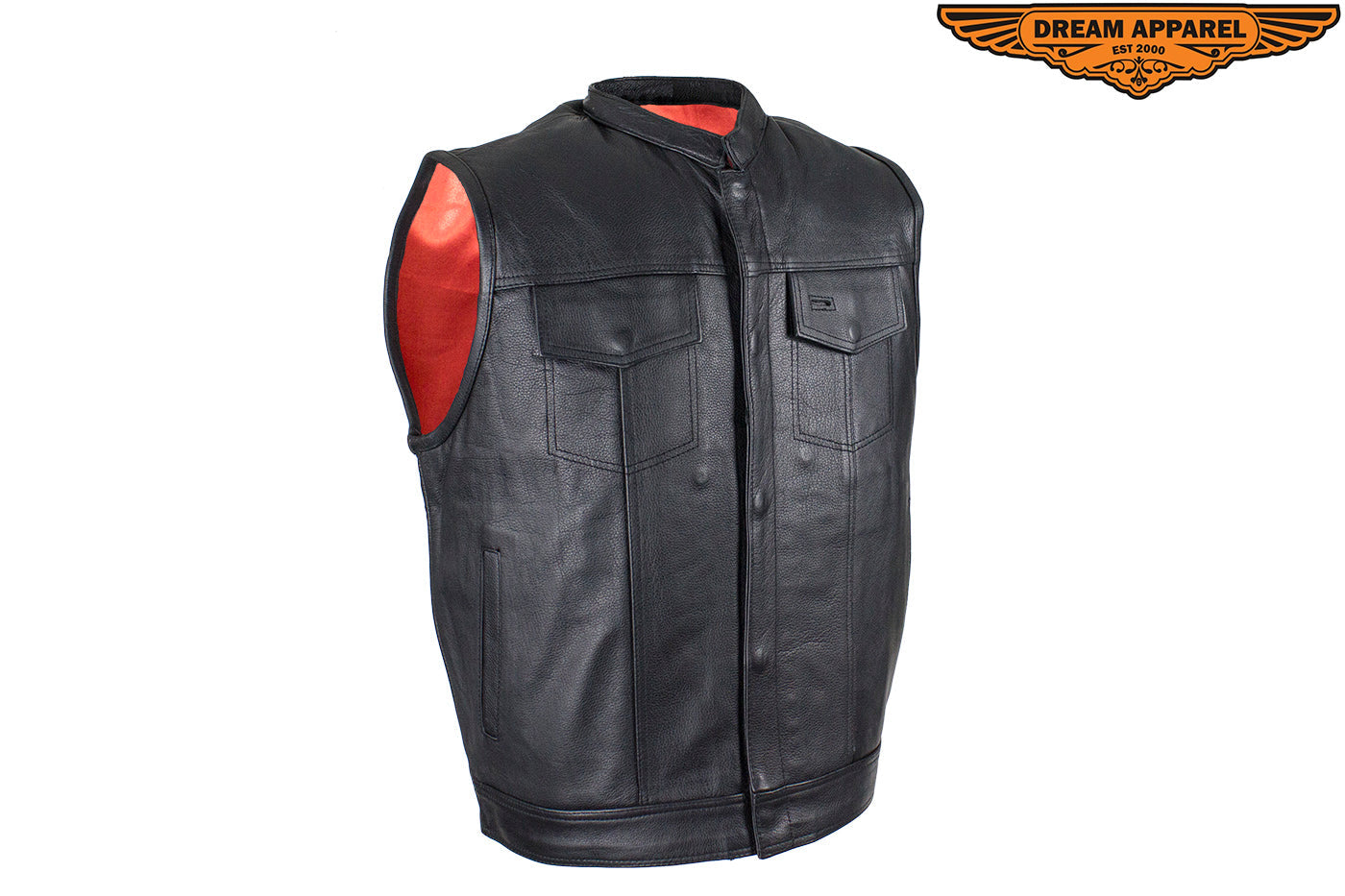 Men's Leather Motorcycle CLUB VEST with Red Liner