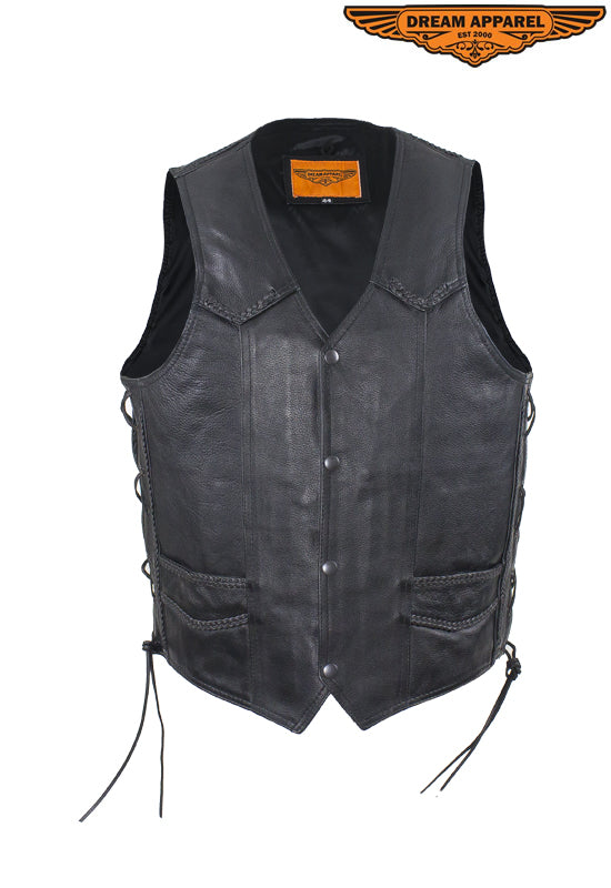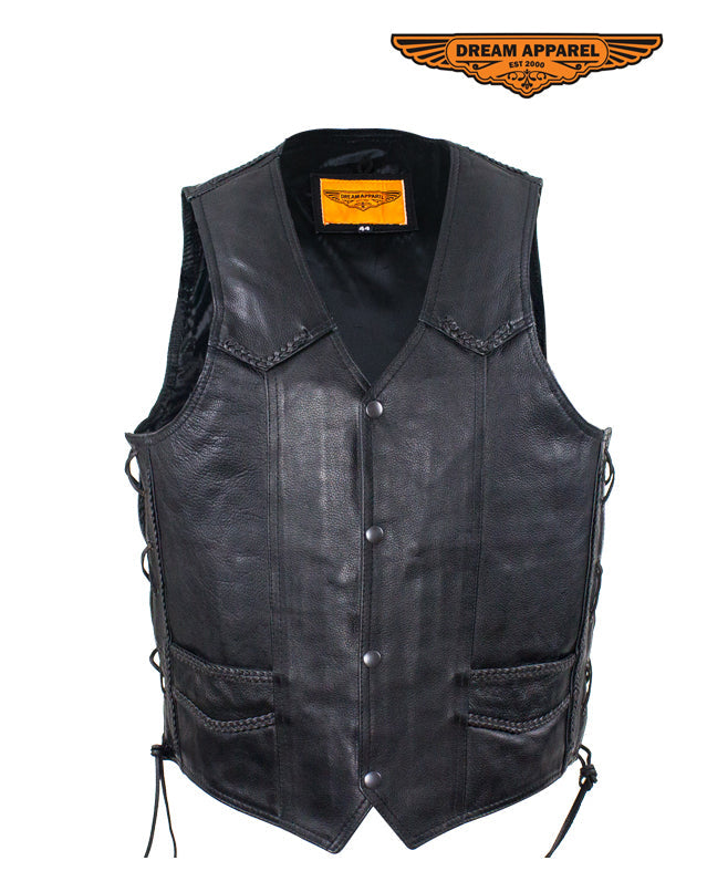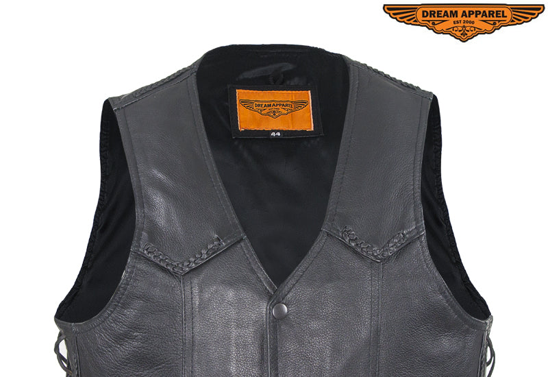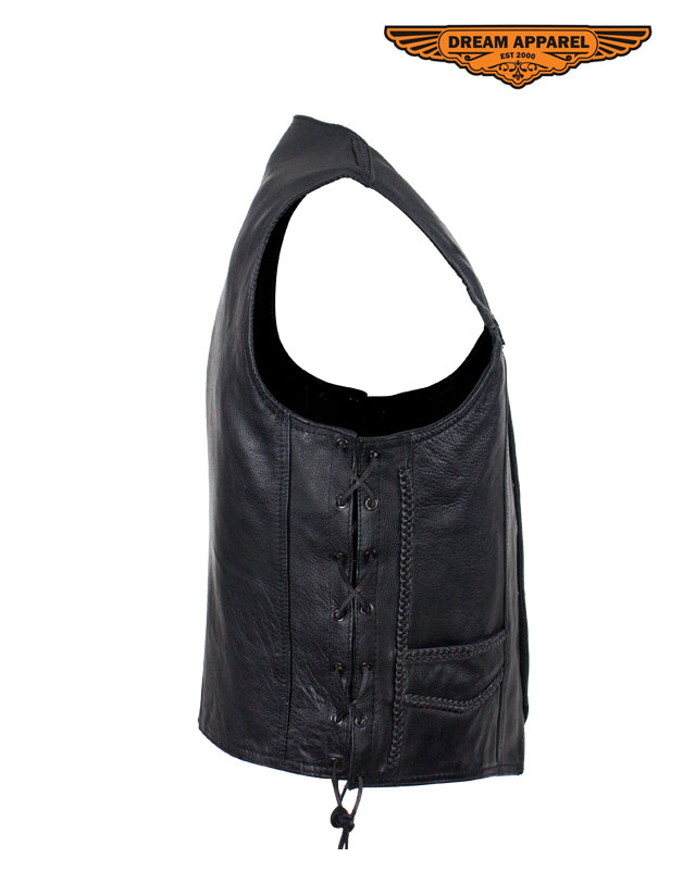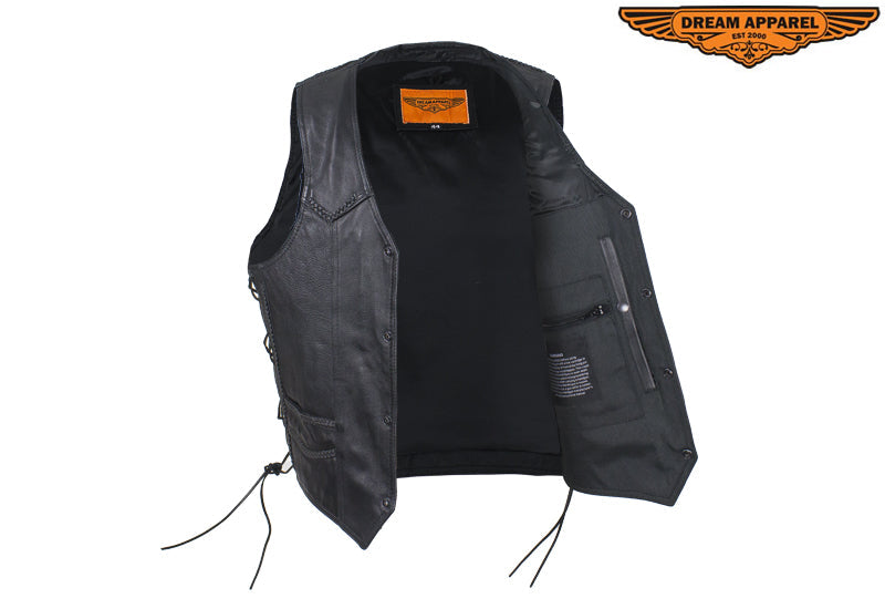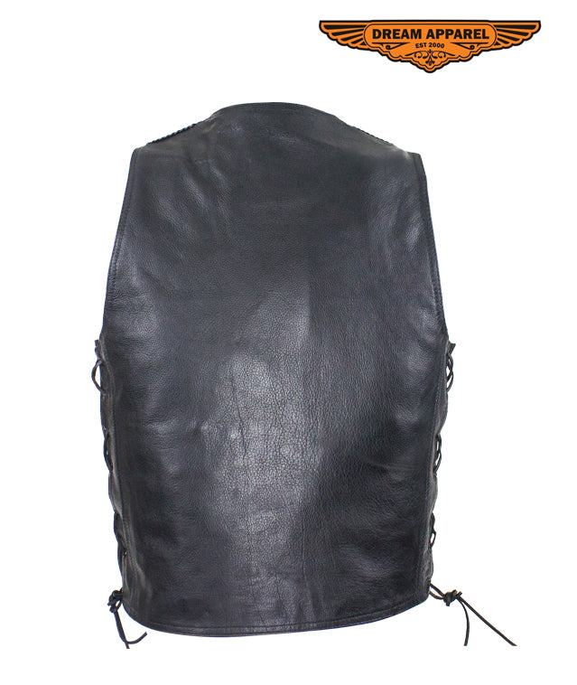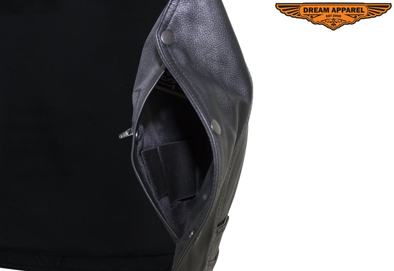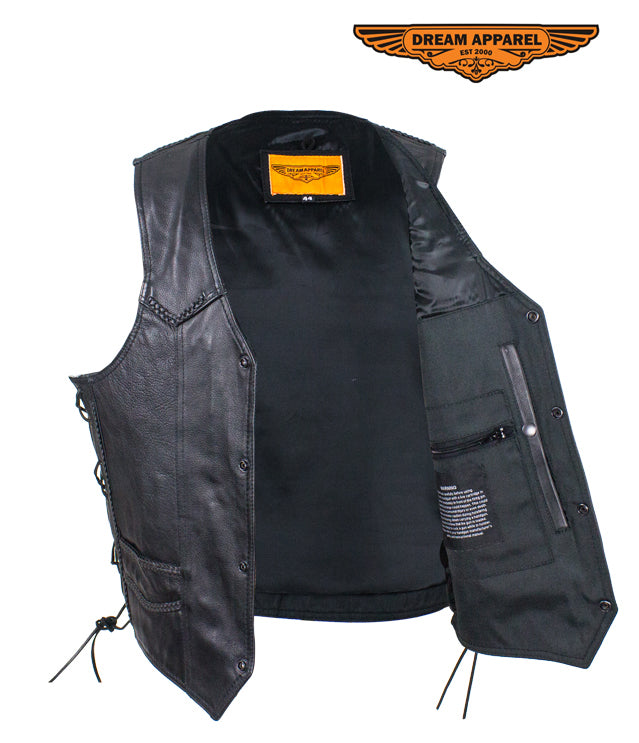 Mens Leather Motorcycle Vest With Huge Gun Pocket