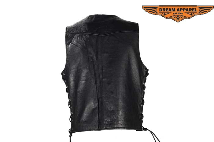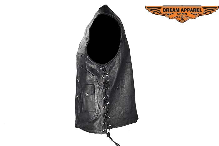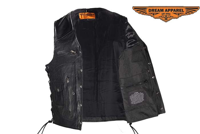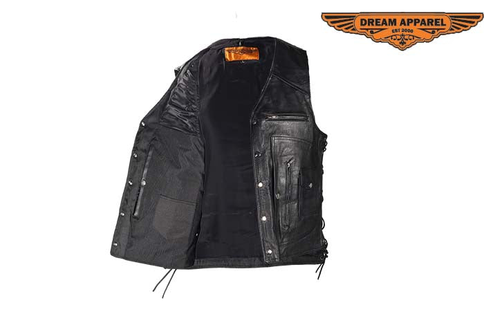 Mens Leather Vest With Gun Pocket & 12 Pockets