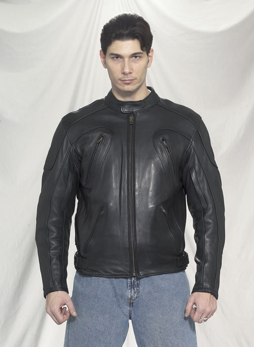 Men's Black Split Cowhide Leather Racer Jacket W/ Adjustable Velcro Straps