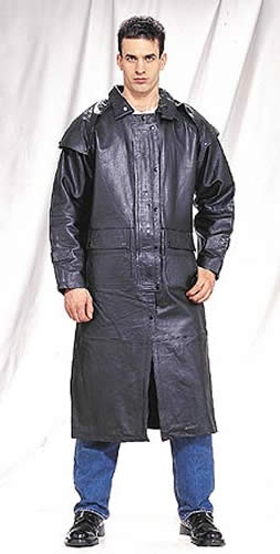 Men's Black Duster W/ Removable Split Cowhide Leather Cape