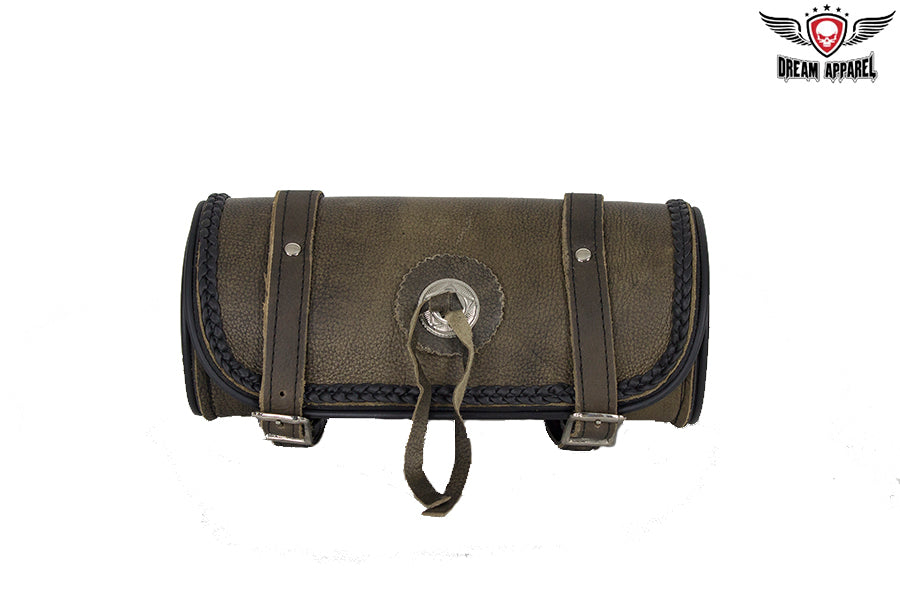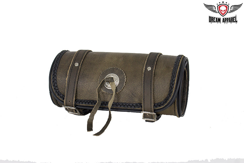 Dream Apparel Brown Leather Motorcycle Tool Bag with Concho