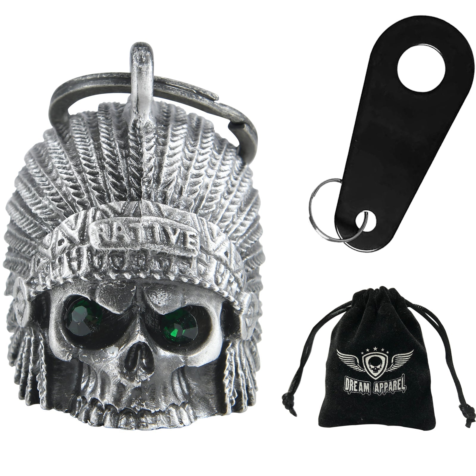 Dream Apparel Indian Skull Head Green Eyes Motorcycle Bell