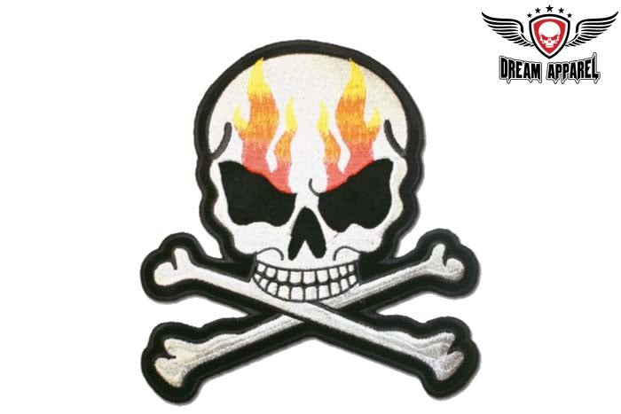 Flaming Skull with Crossbones Patch