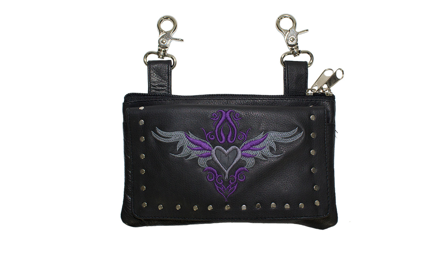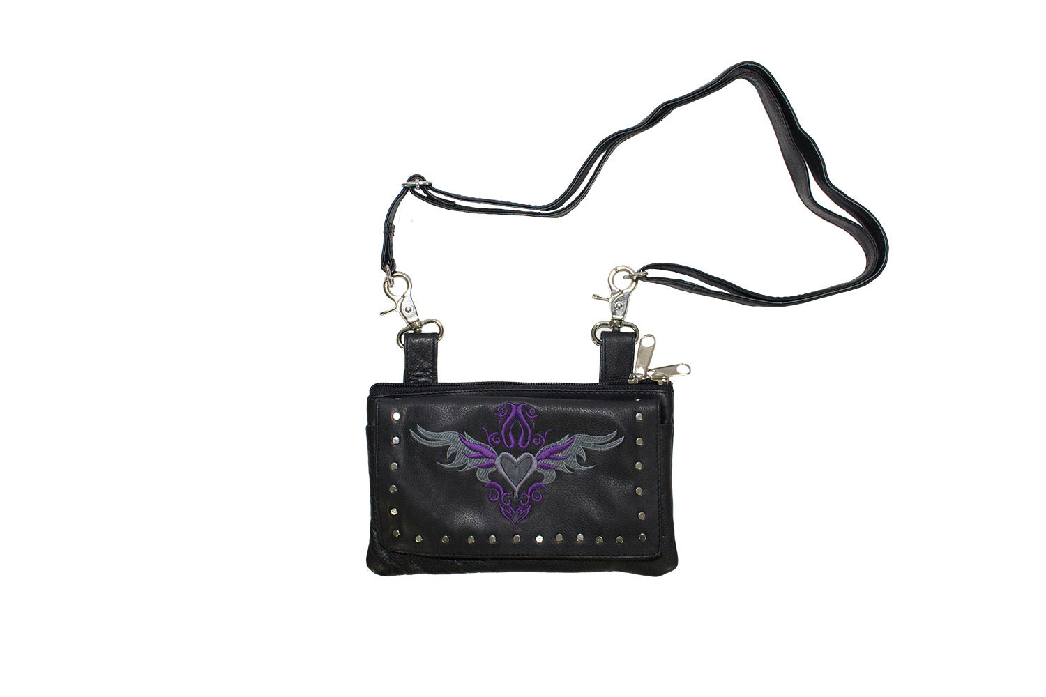 All Naked Cowhide Leather Belt Bag with Gray/Purple Heart and Studs