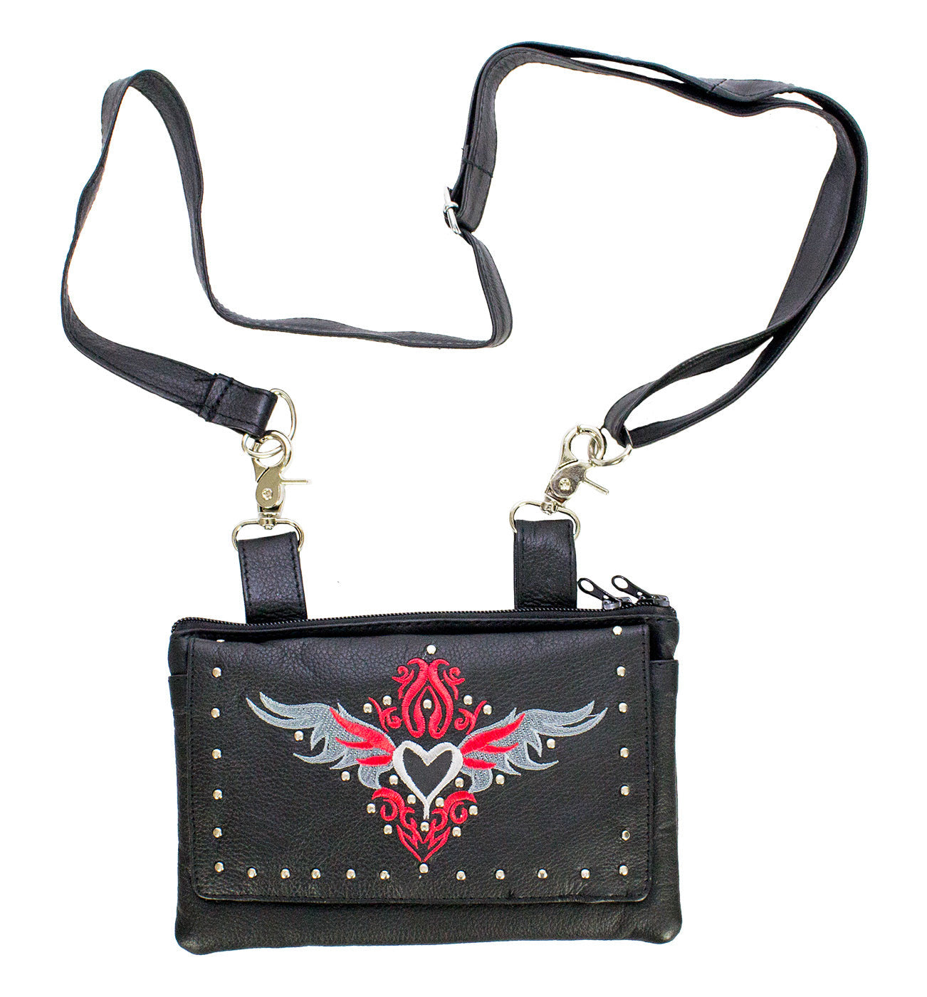 All Naked Cowhide Leather Belt Bag with Red/Gray Heart and Studs