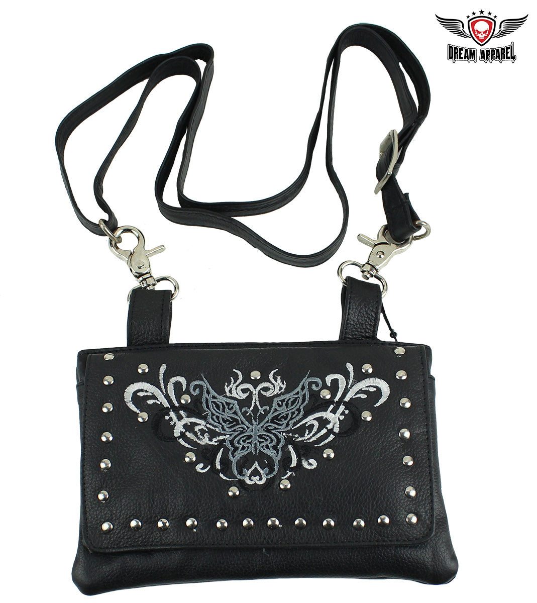 All Naked Cowhide Leather Black Butterfly Belt Bag