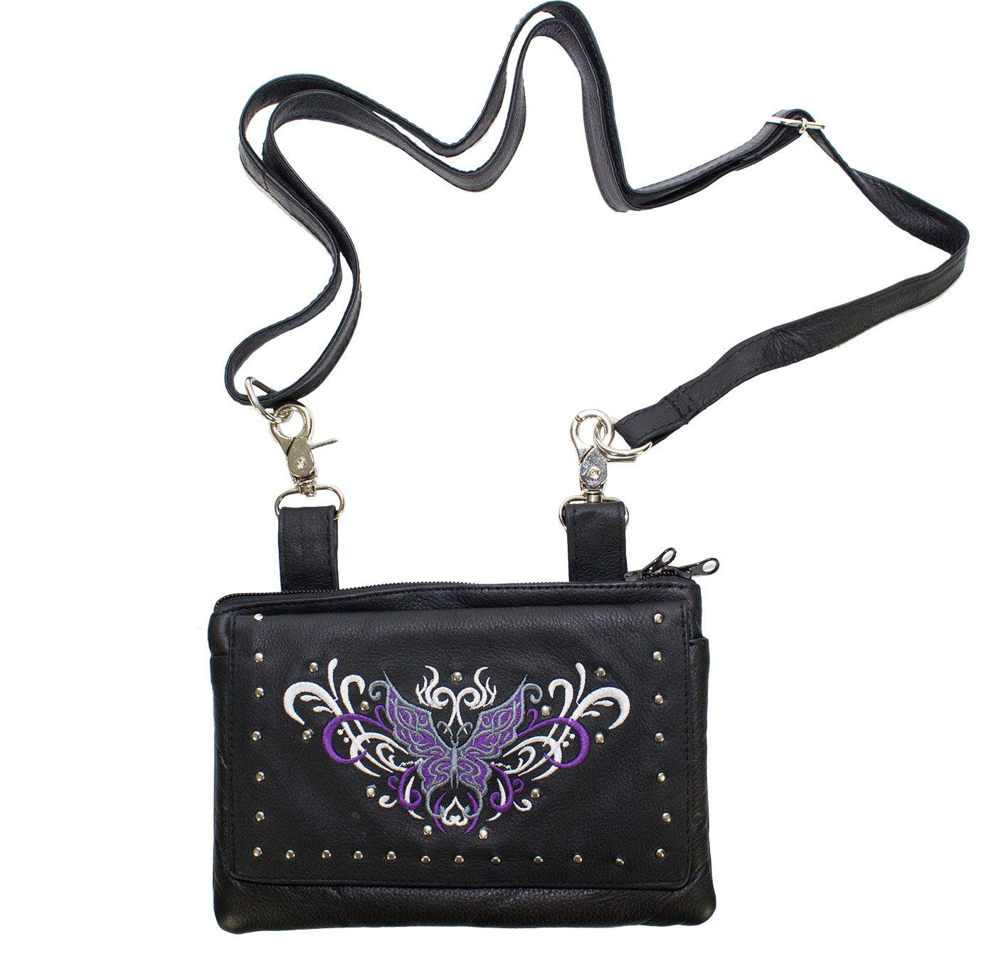 All Naked Cowhide Leather Purple Butterfly Belt Bag