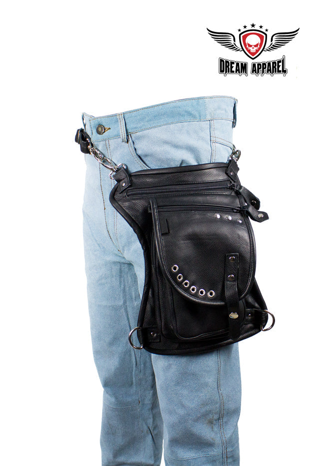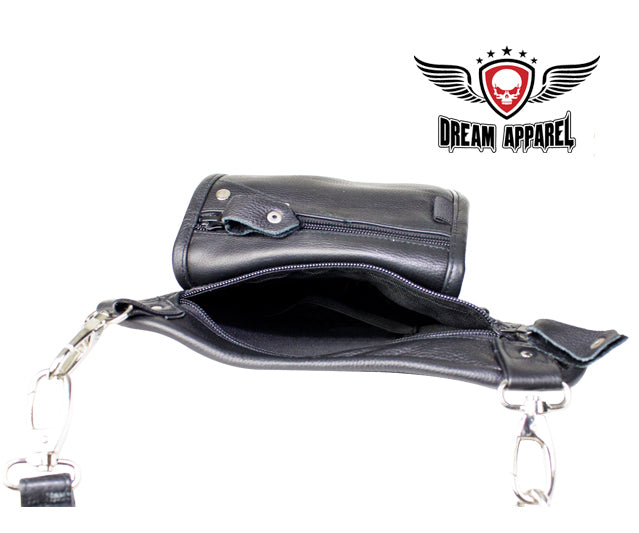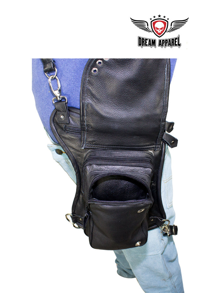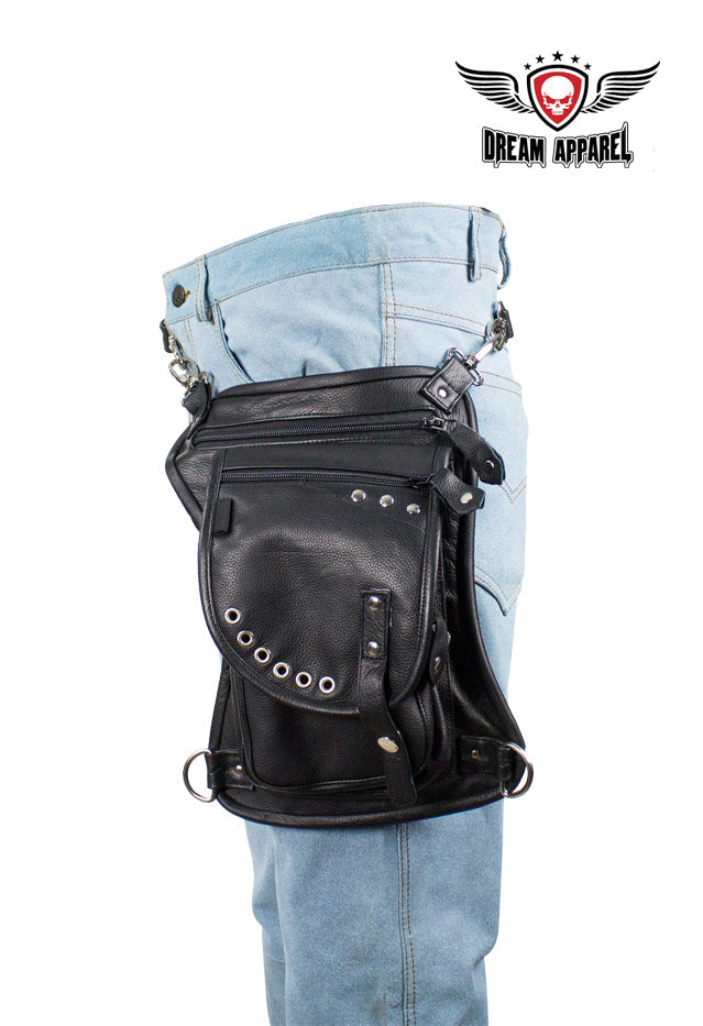 Black Naked Cowhide Leather Thigh Bag W/ Gun Pocket