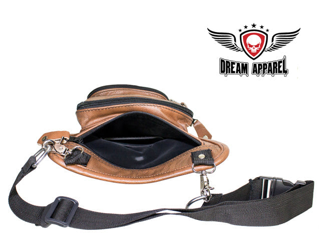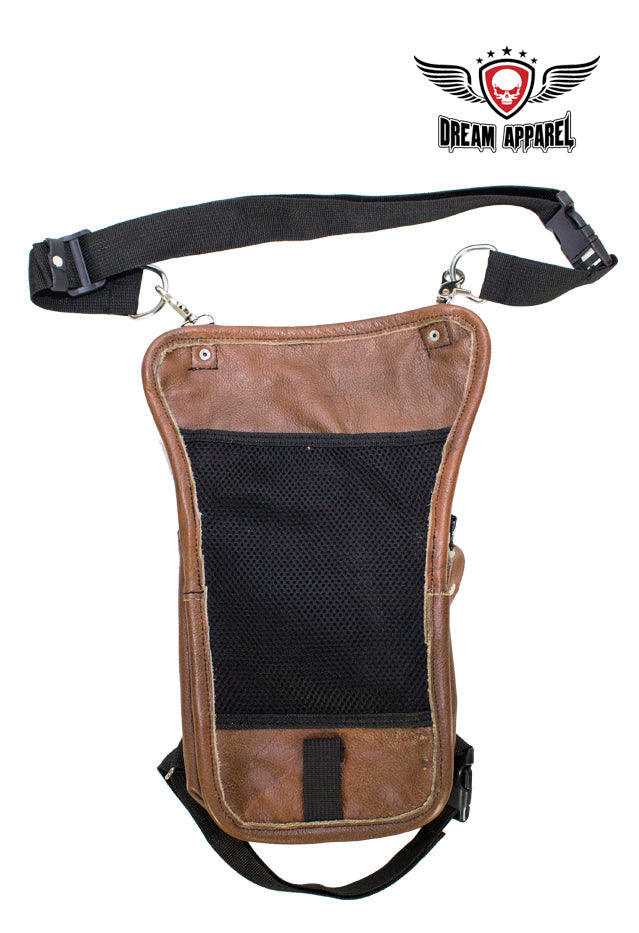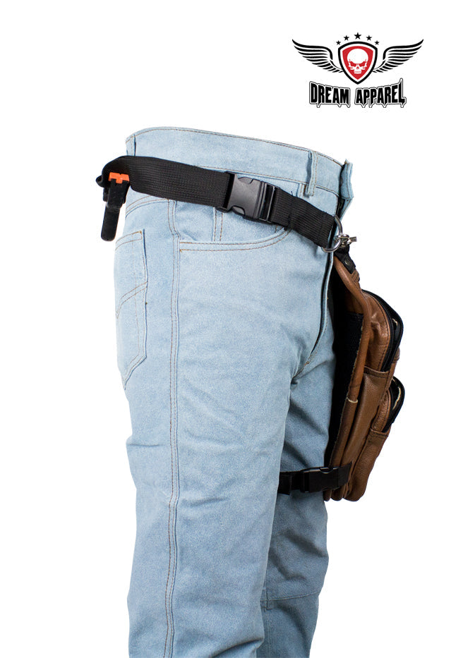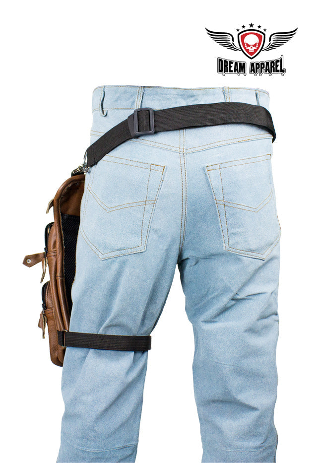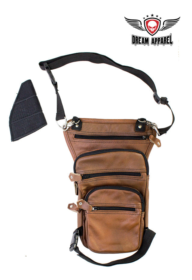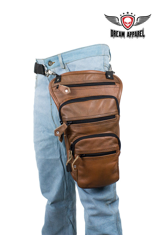 Brown Naked Cowhide Leather Multi-pocket Thigh Bags