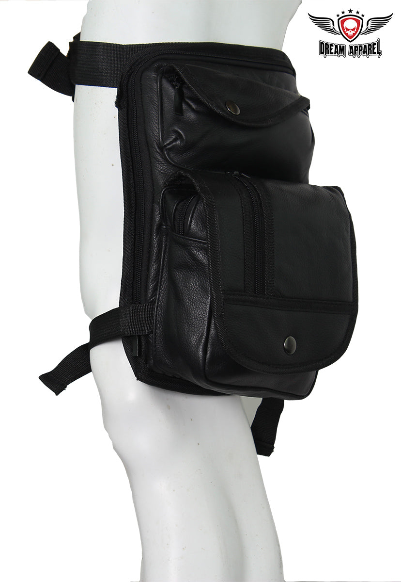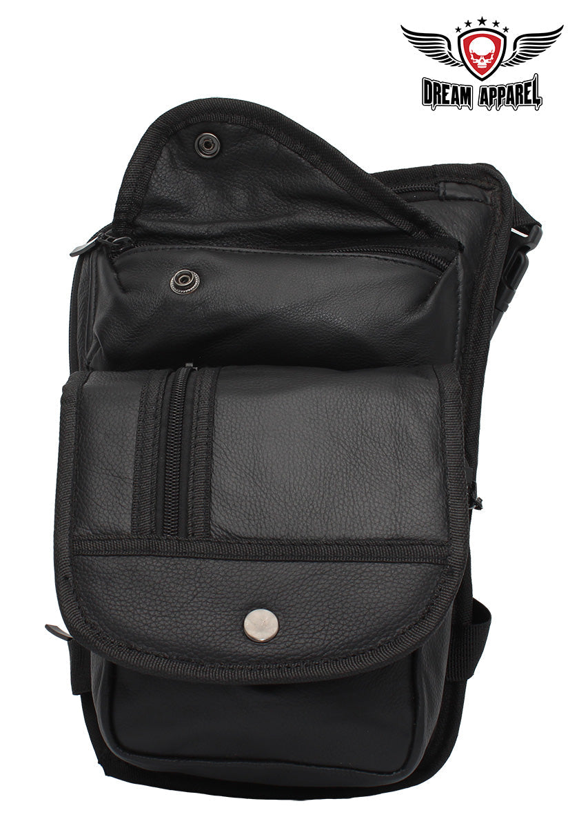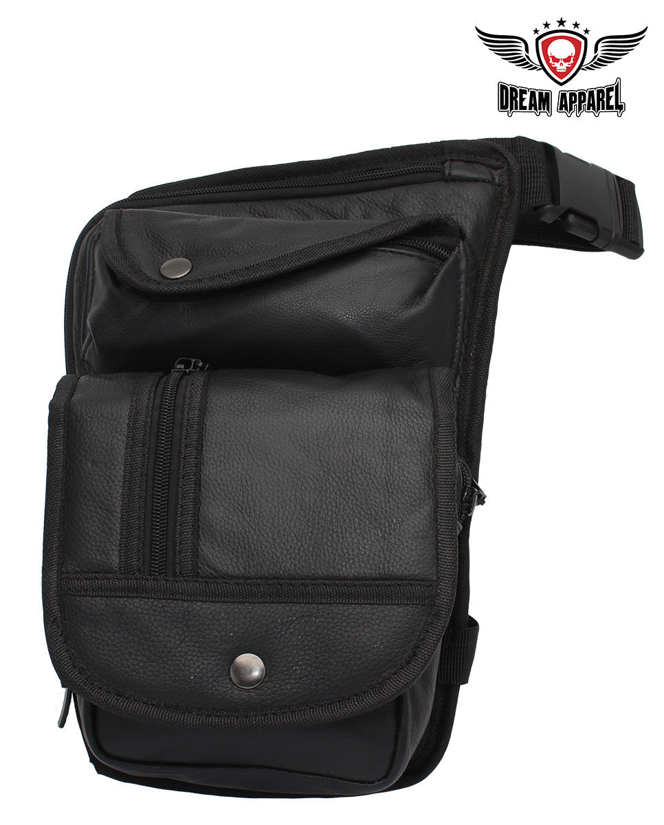Naked Cowhide Leather Thigh Bag W/ Gun Pocket - Black