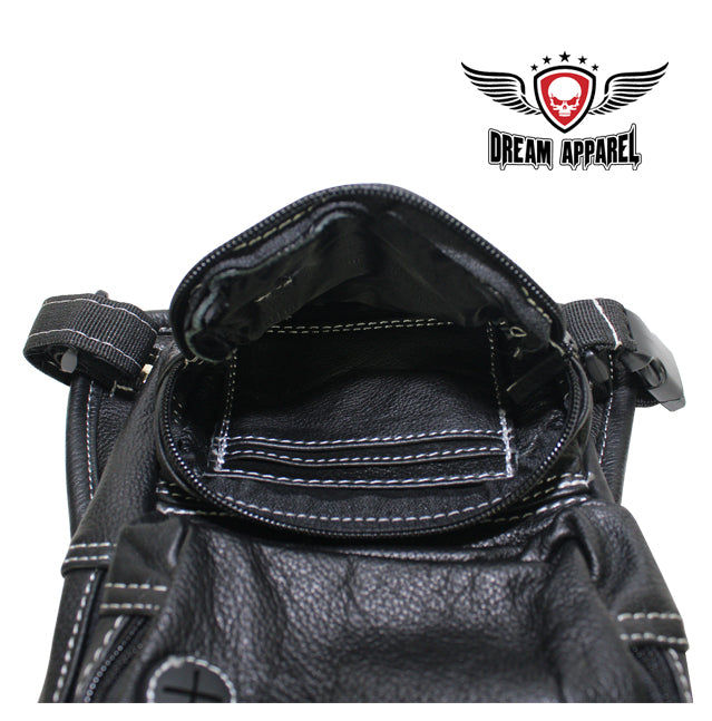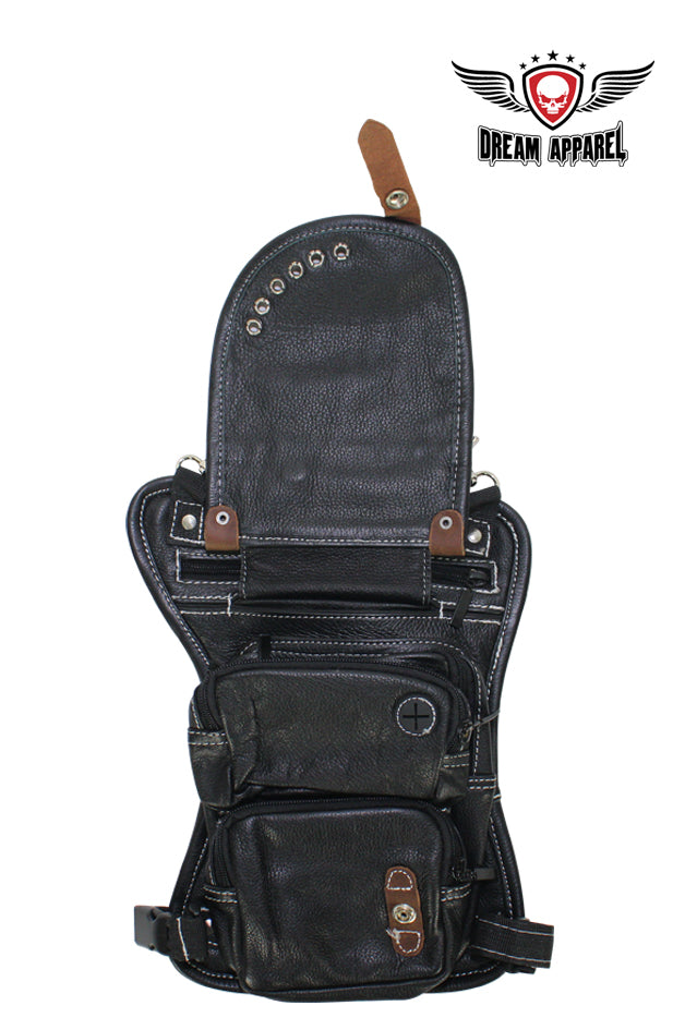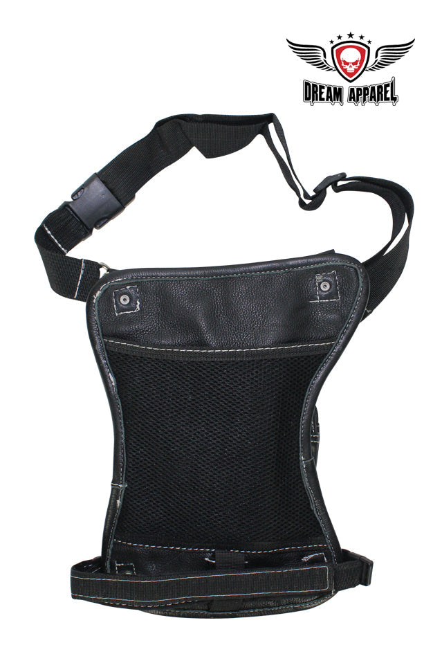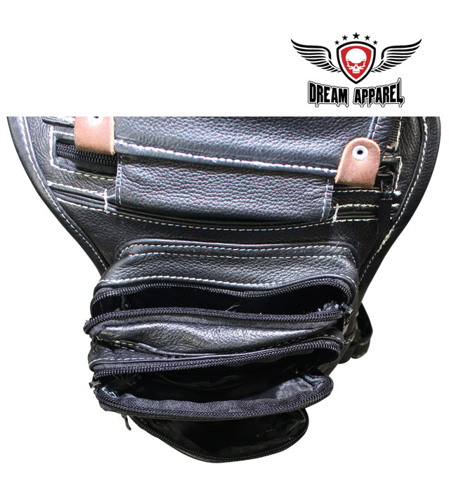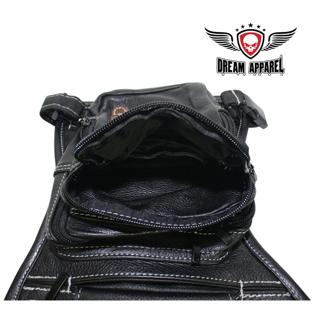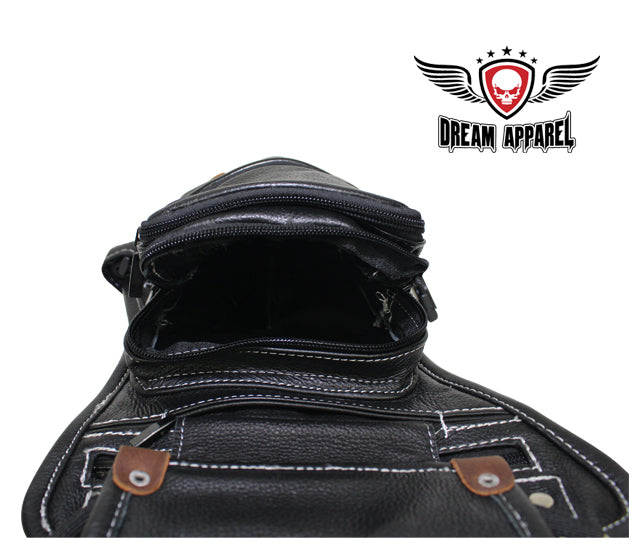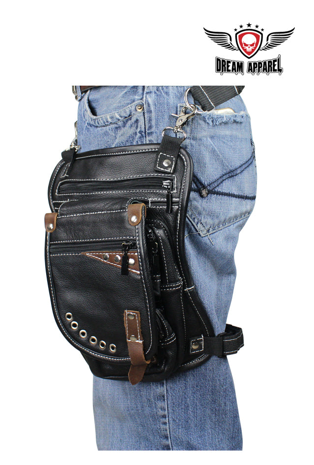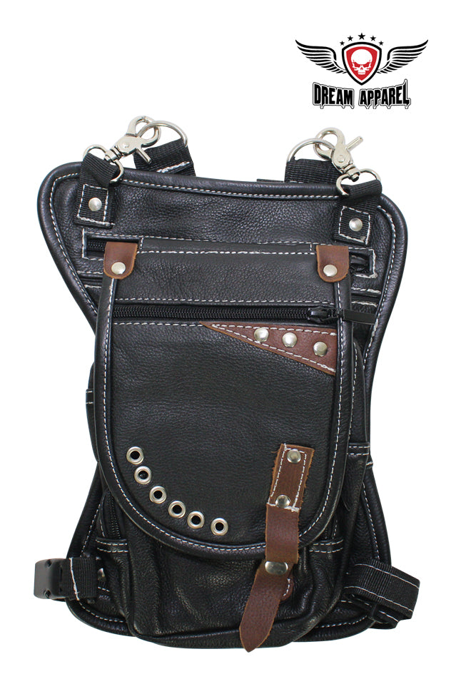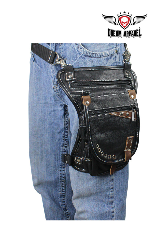 Naked Cowhide Leather Thigh Bag W/ Gun Pocket - Black & Touch Of Dark Brown