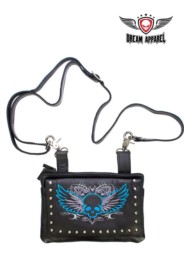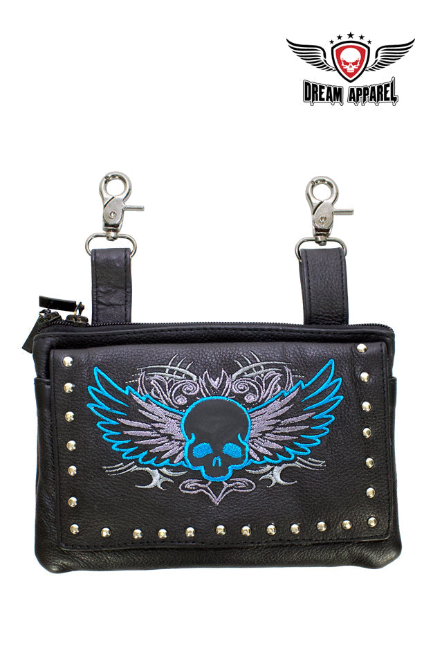 Studded Naked Cowhide Leather Turquoise Skull Belt Bag