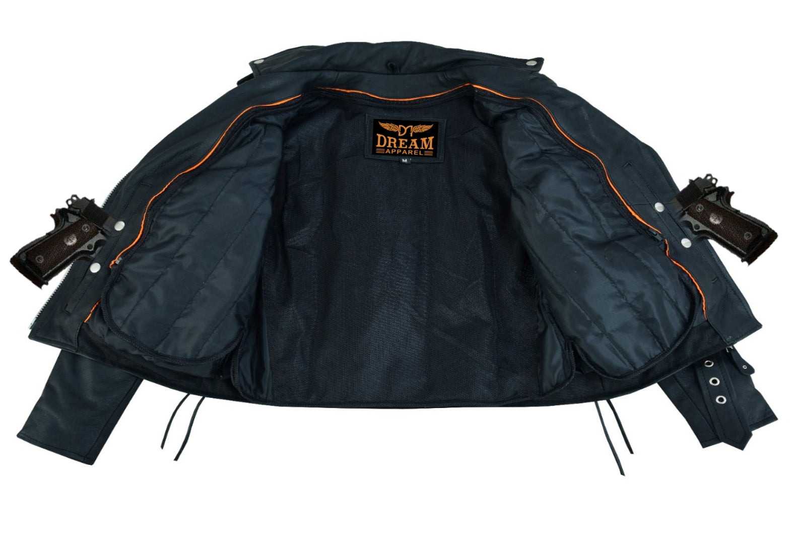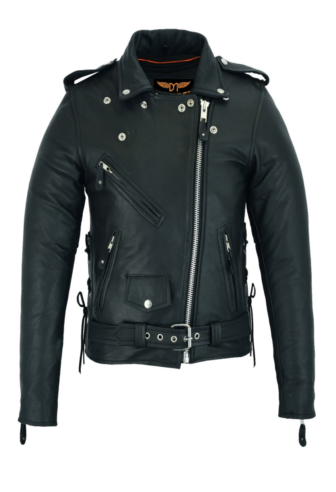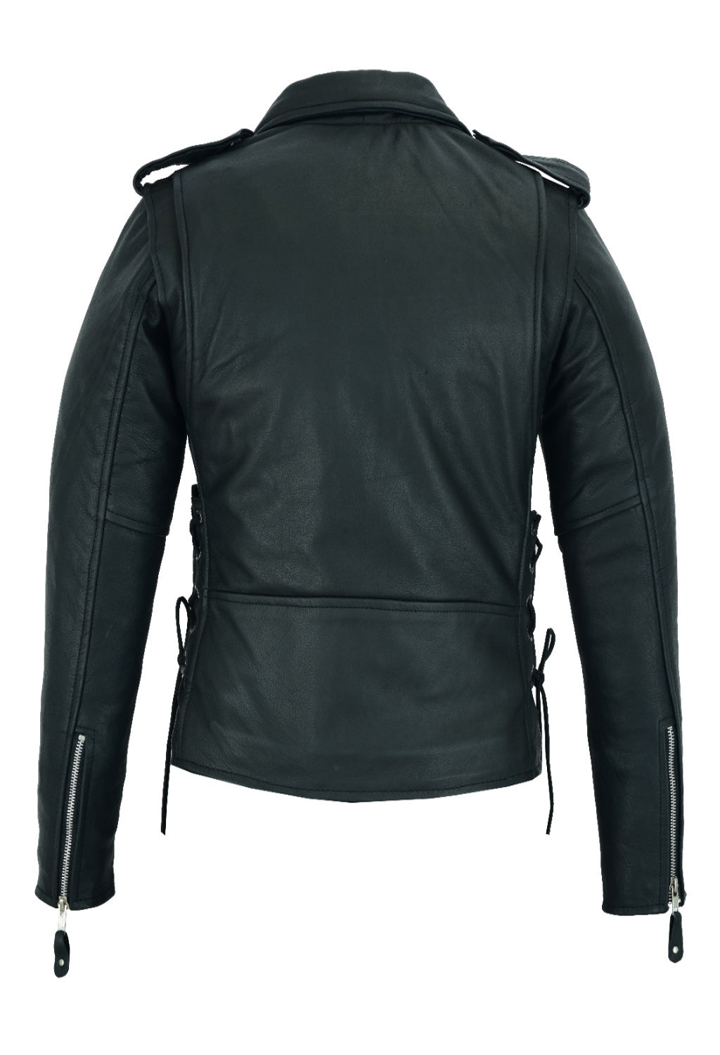 Women Motorcycle Classic Leather Jacket Premier Cowhide Leather Gun Pockets Side Laces
