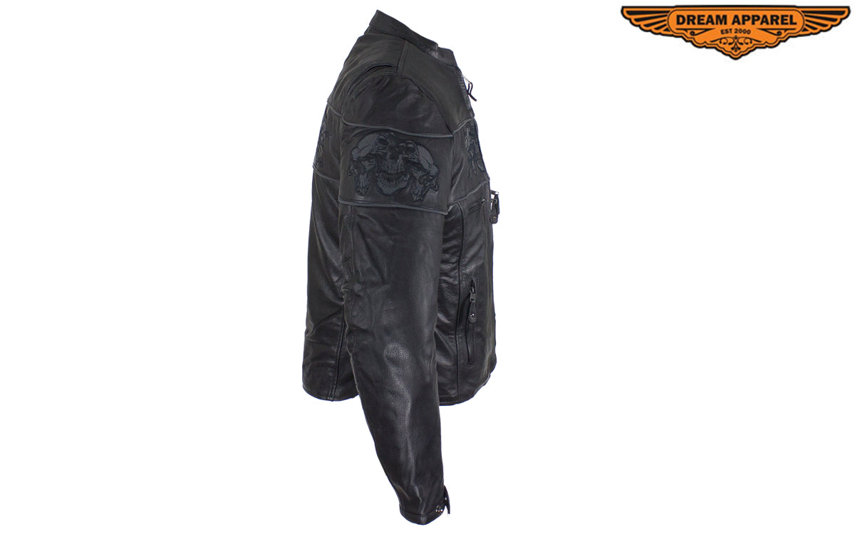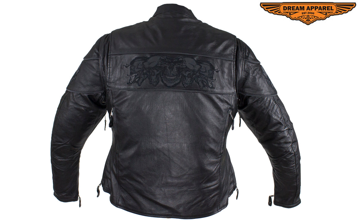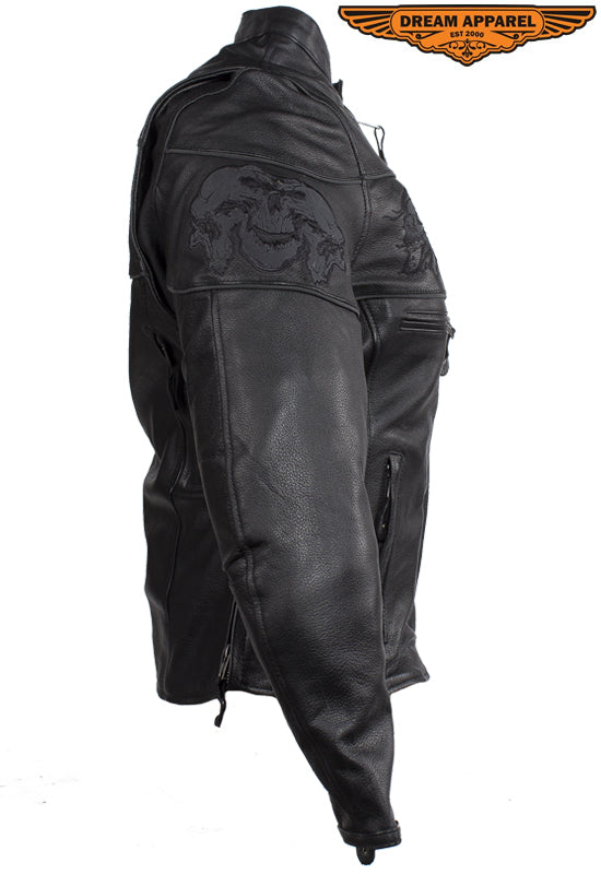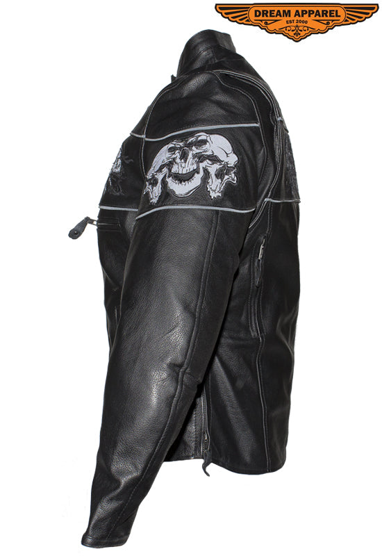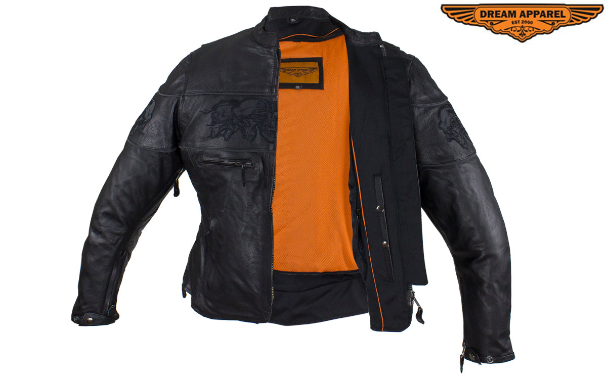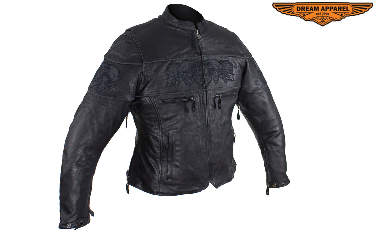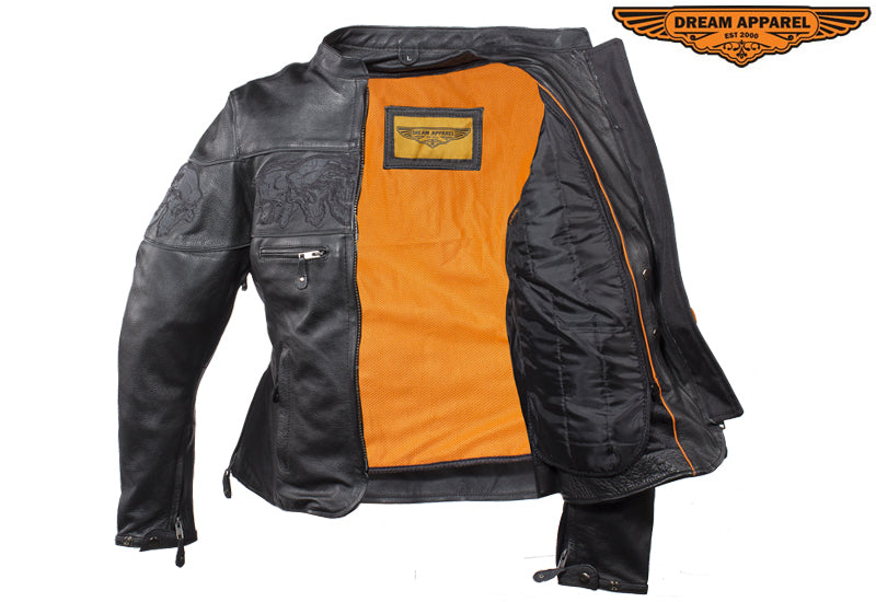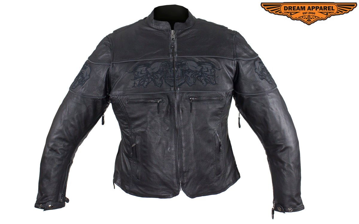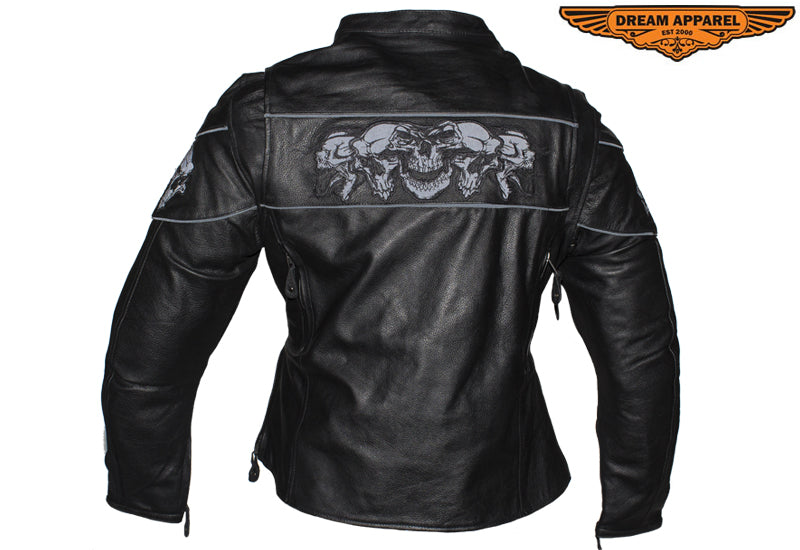 Womens Leather Motorcycle Jacket With Reflective Skulls