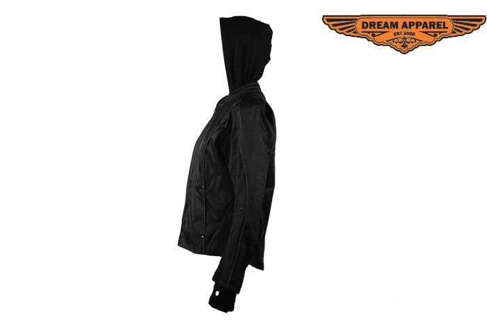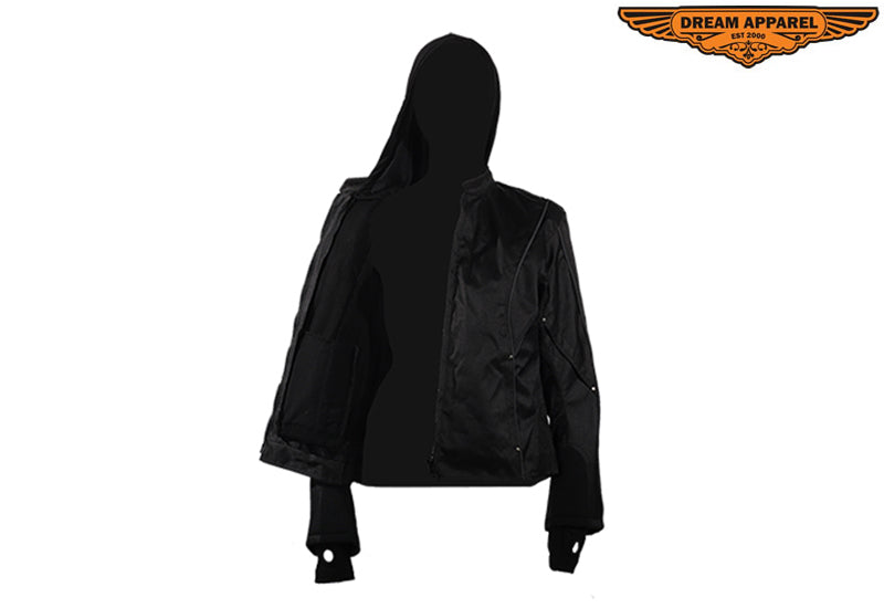 Women's Motorcycle Textile Jacket w/ Black Hoodie & Reflective Wings & Heart