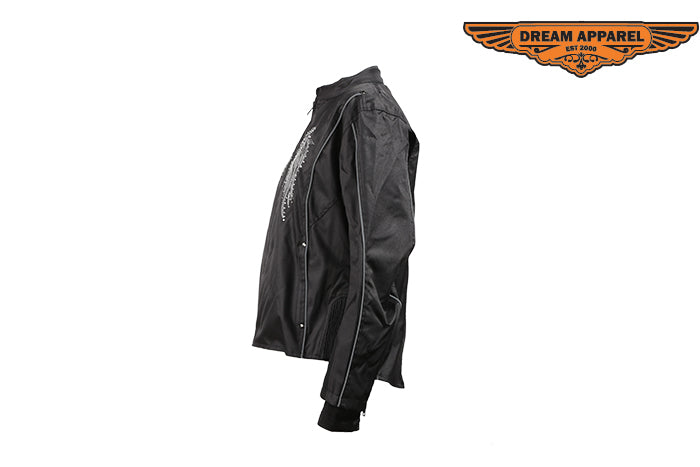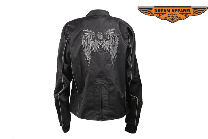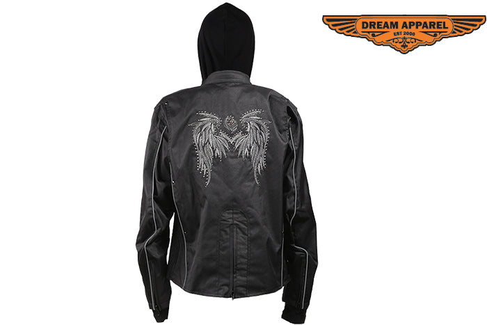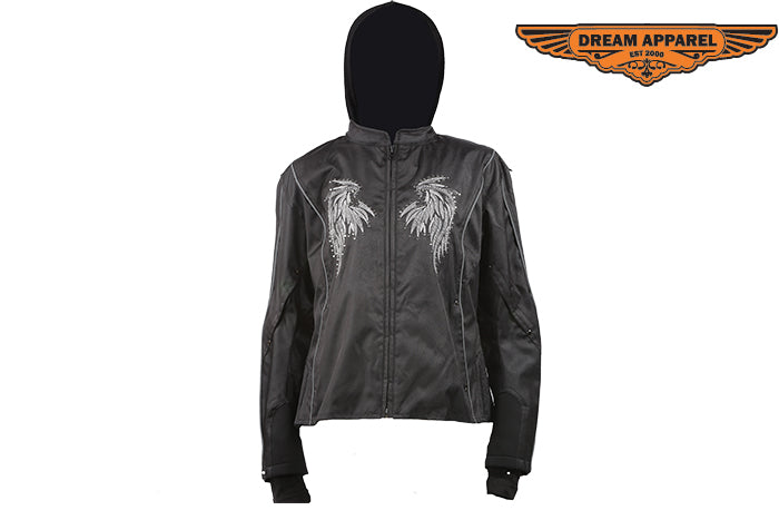 Womens Textile Motorcycle Jacket With Black Hoodie & Wings