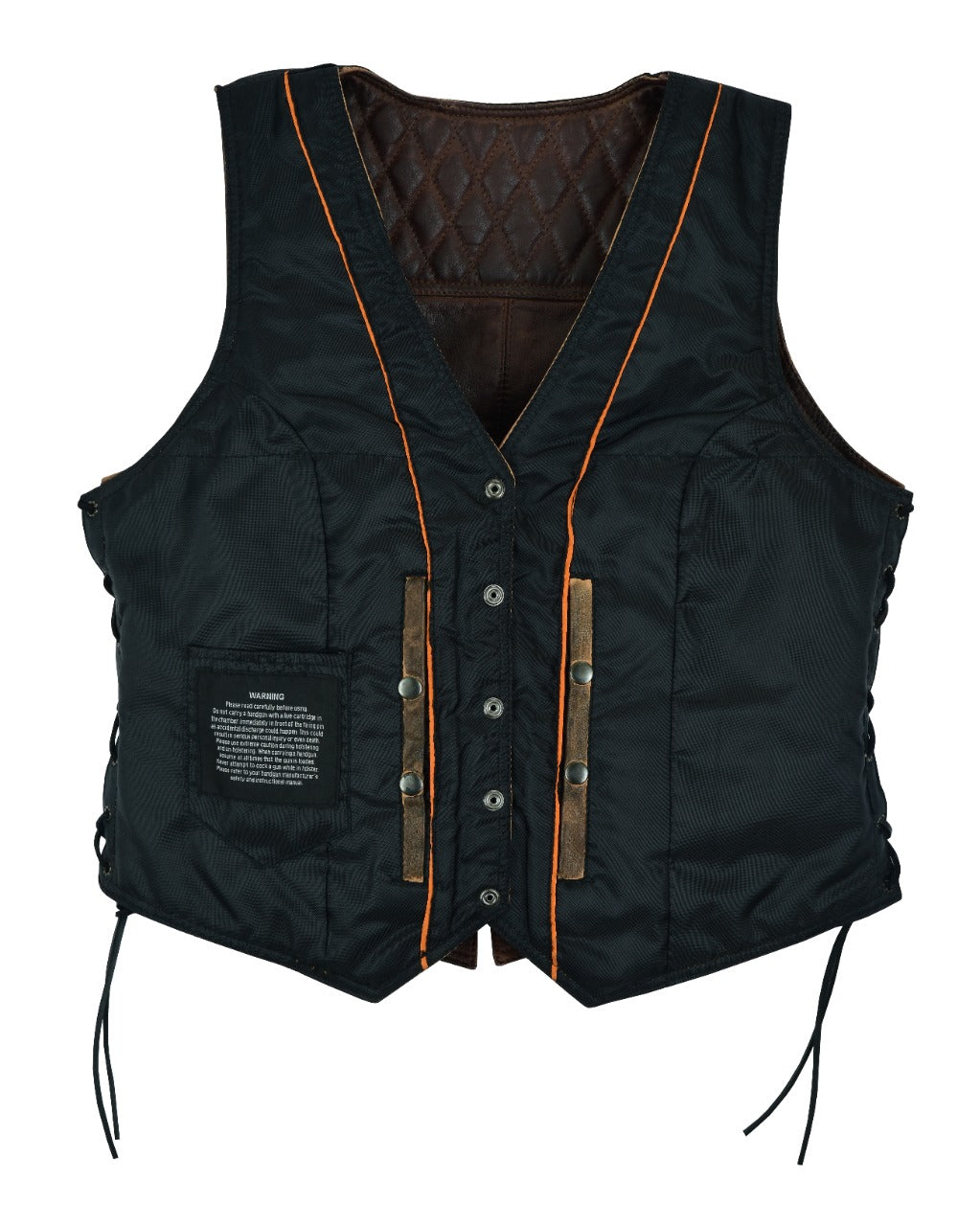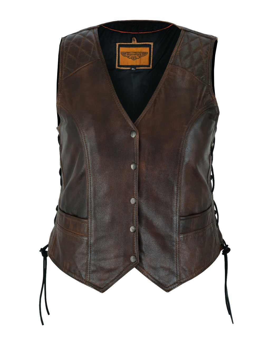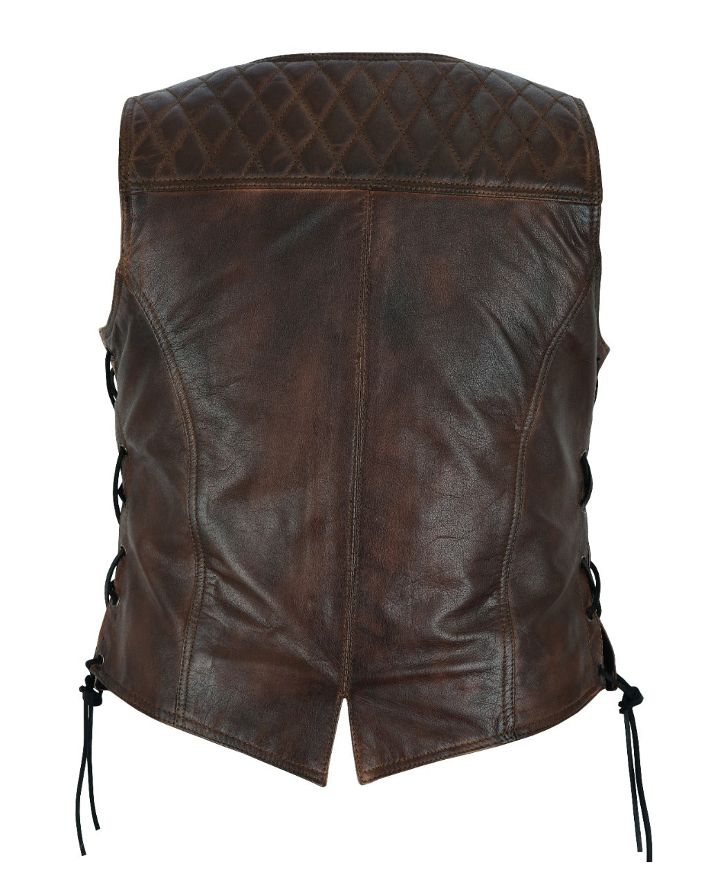 Dream Apparel® Premium Cowhide Brown Vest with Diamond Design on Shoulder & Upper Back