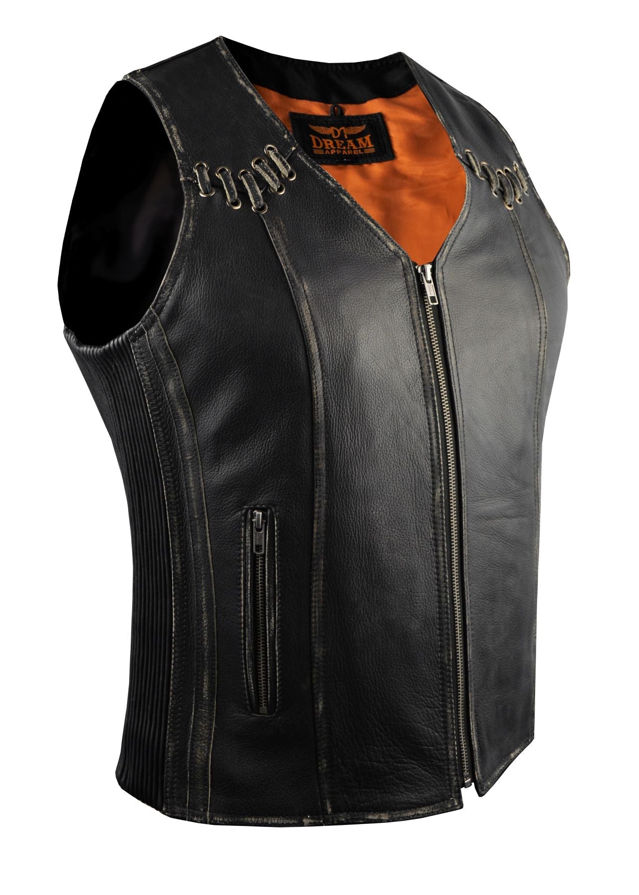 Women Zipper Vest - Stretchable Sides, Conceal Carry Pockets, Premium Naked Cowhide Leather